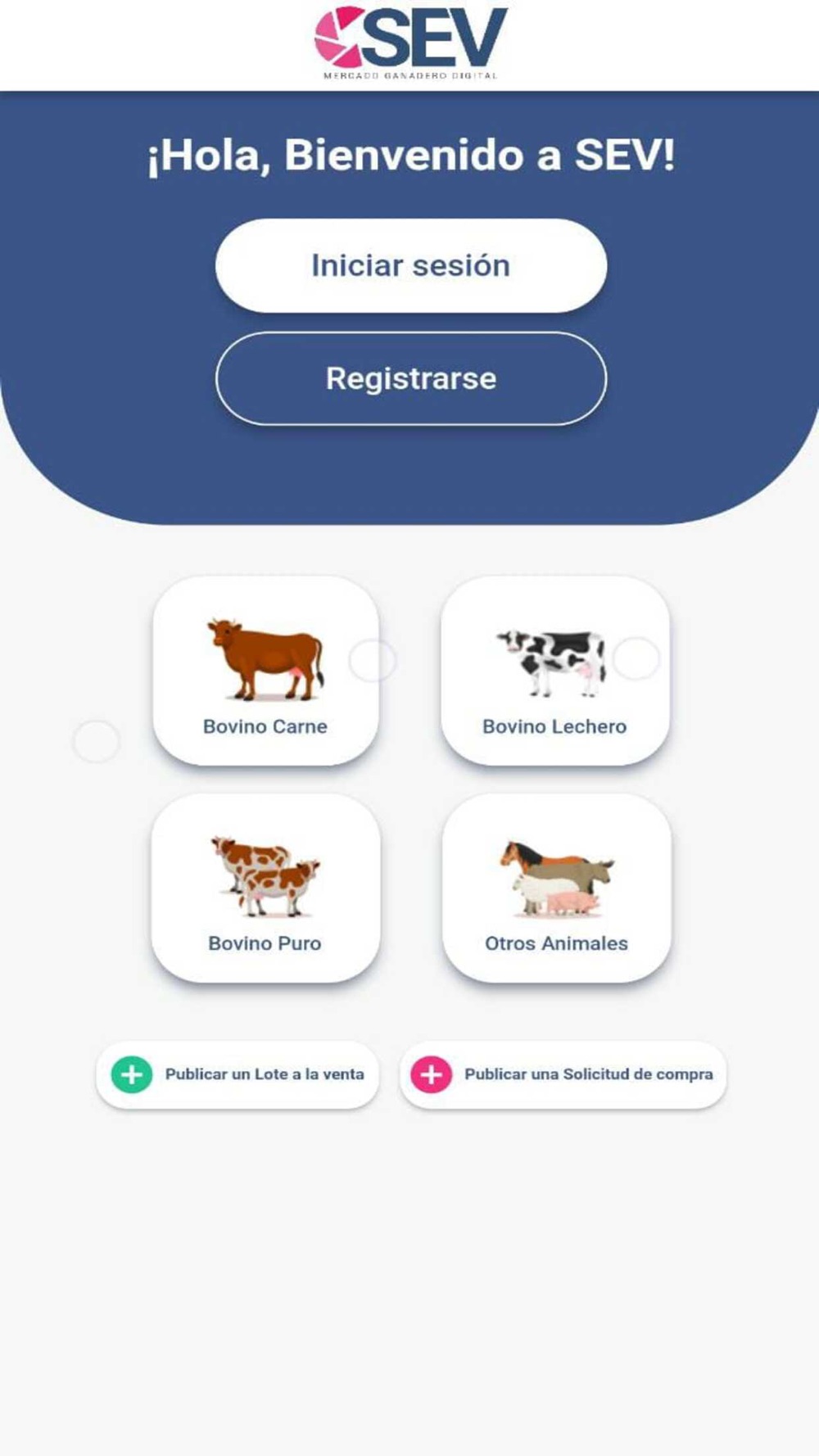 Mercado Ganadero SEV es una app que facilita la compra y venta de ganado tipo carne y leche a nivel nacional. Conectamos compradores y vendedores directamente, según su distancia e intereses, ahorrándoles costos y tiempo en el proceso de negociación. Una vez registrado, puedes publicar ofertas de ganado, comprar lotes de otros usuarios, publicar solicitudes de compra o si cuentas con los animales aplicar a las solicitudes de otros usuarios. Forma parte de esta red comercial y mantente al tanto de las últimas oportunidades de negocio en el mercado.