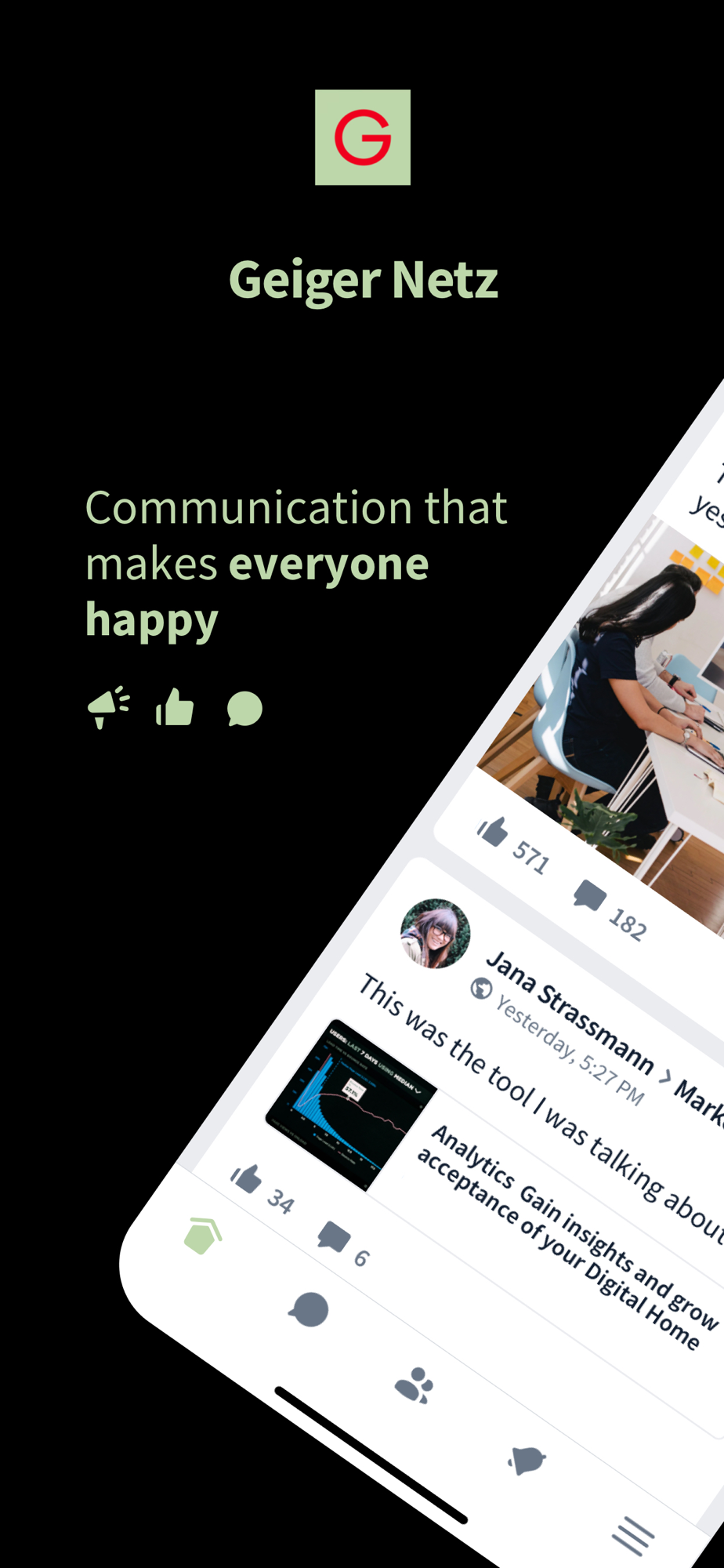 The Geiger Netz is the employee app of the Geiger Group (formerly COYO-app). With the Geiger Netz, employees of the Geiger Group can inform themselves and network across all locations.