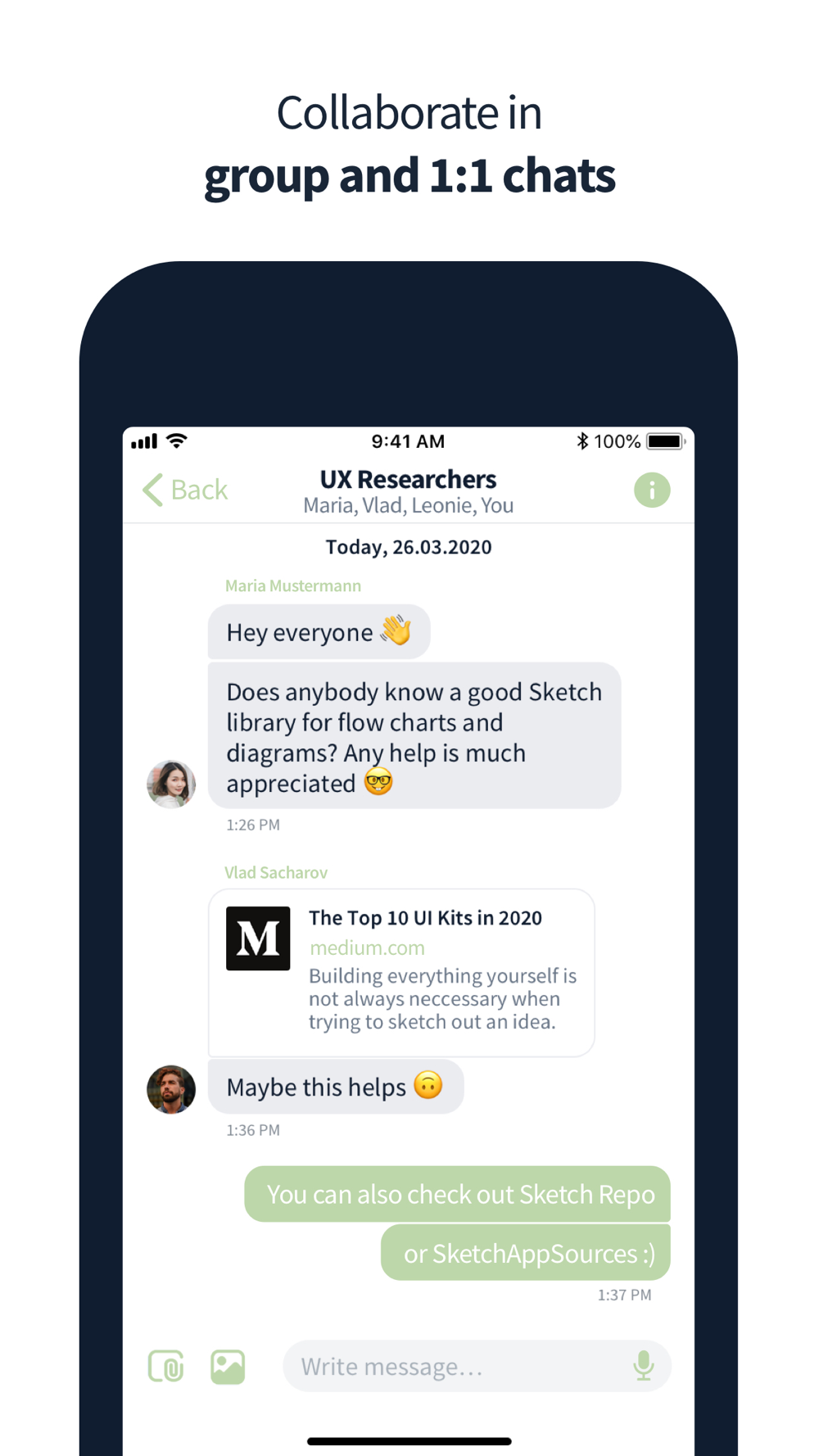 * Simple and direct communication between colleagues via chat
