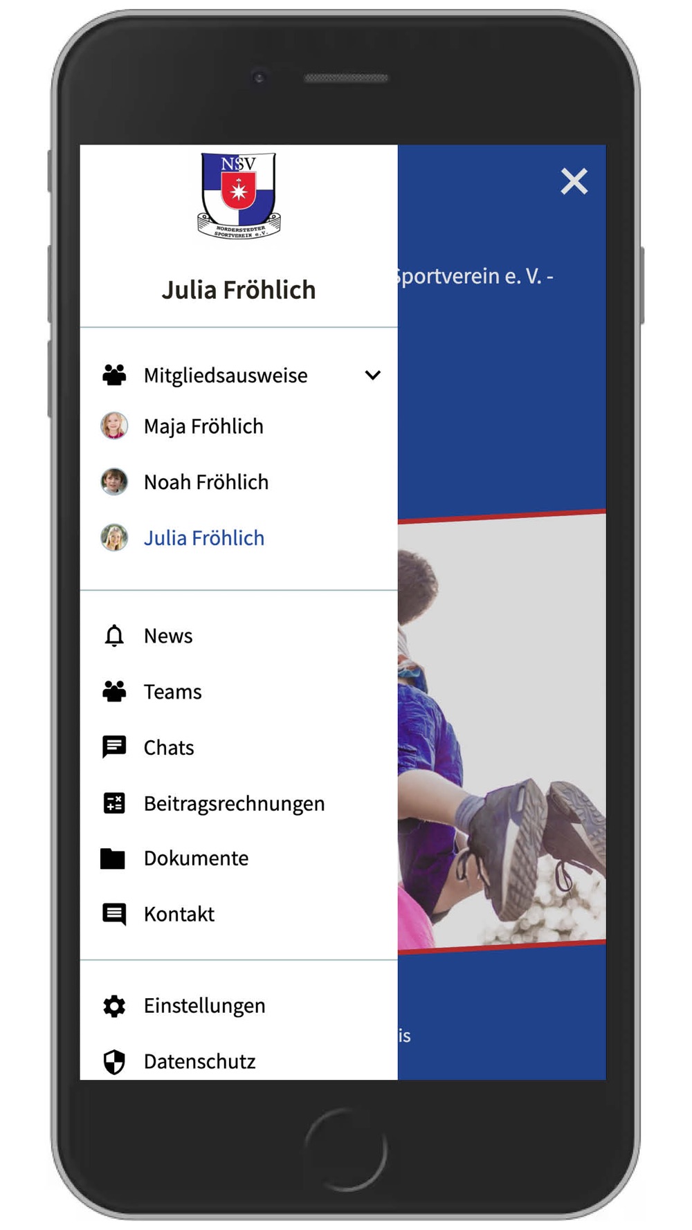 Mit der neuen und kostenlosen NSV-Mitglieder-App bist Du immer brandaktuell über das Geschehen in unserem Verein informiert und hast alle relevanten Vereinsinformationen- und Kontakte zur Hand - auch von unterwegs. Ändere Deine Kontaktdaten mit nur wenigen Klicks, verwalte auf Wunsch auch die Daten Deiner Kinder und profitiere dabei vom integrierten Mitgliedsausweis mit komfortablem Check-In in den Sportstätten. Zahlreiche weitere Funktionen kommen im Laufe des Jahres hinzu.