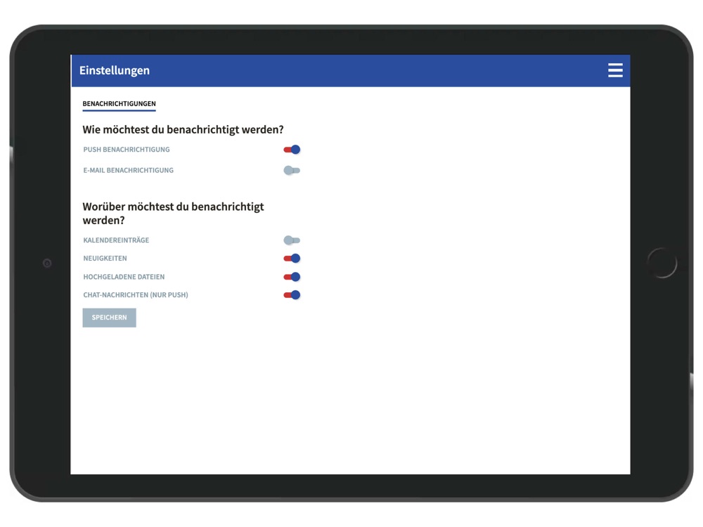 - Datenfreigabe: Entscheide selbst, welche Deiner Kommunikations- und Kontaktdaten Du für andere Mitglieder Deines Teams freigeben möchtest.