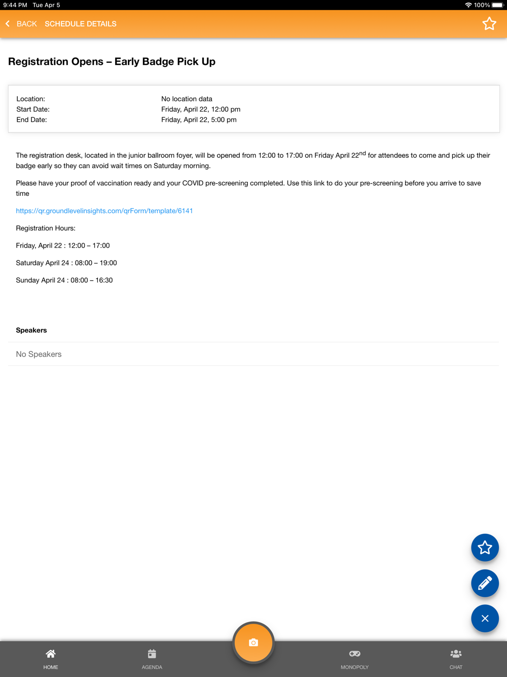 The app has an agenda, floor layout, speaker details, social interaction, and other event relevant information. The app also has two areas for users to interact within the event, which are “The Great Monopoly Challenge” and contact to contact sharing.