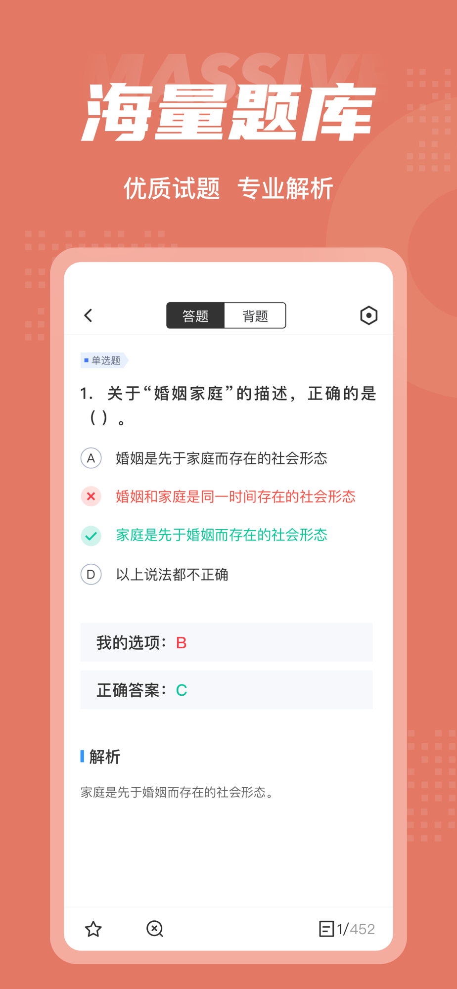 婚姻情感咨询师考试聚题库为您的婚姻情感咨询师考试准备了超过3,000多道题目,祝您成功通过婚姻情感咨询师考试以及其相关考试。包含了婚姻情感咨询师考试大纲所确定的范围。更有历年真题及模拟试题题型,题库中的试题全真模拟真实的考试,是各位考生学习乃至通过考试的好帮手。