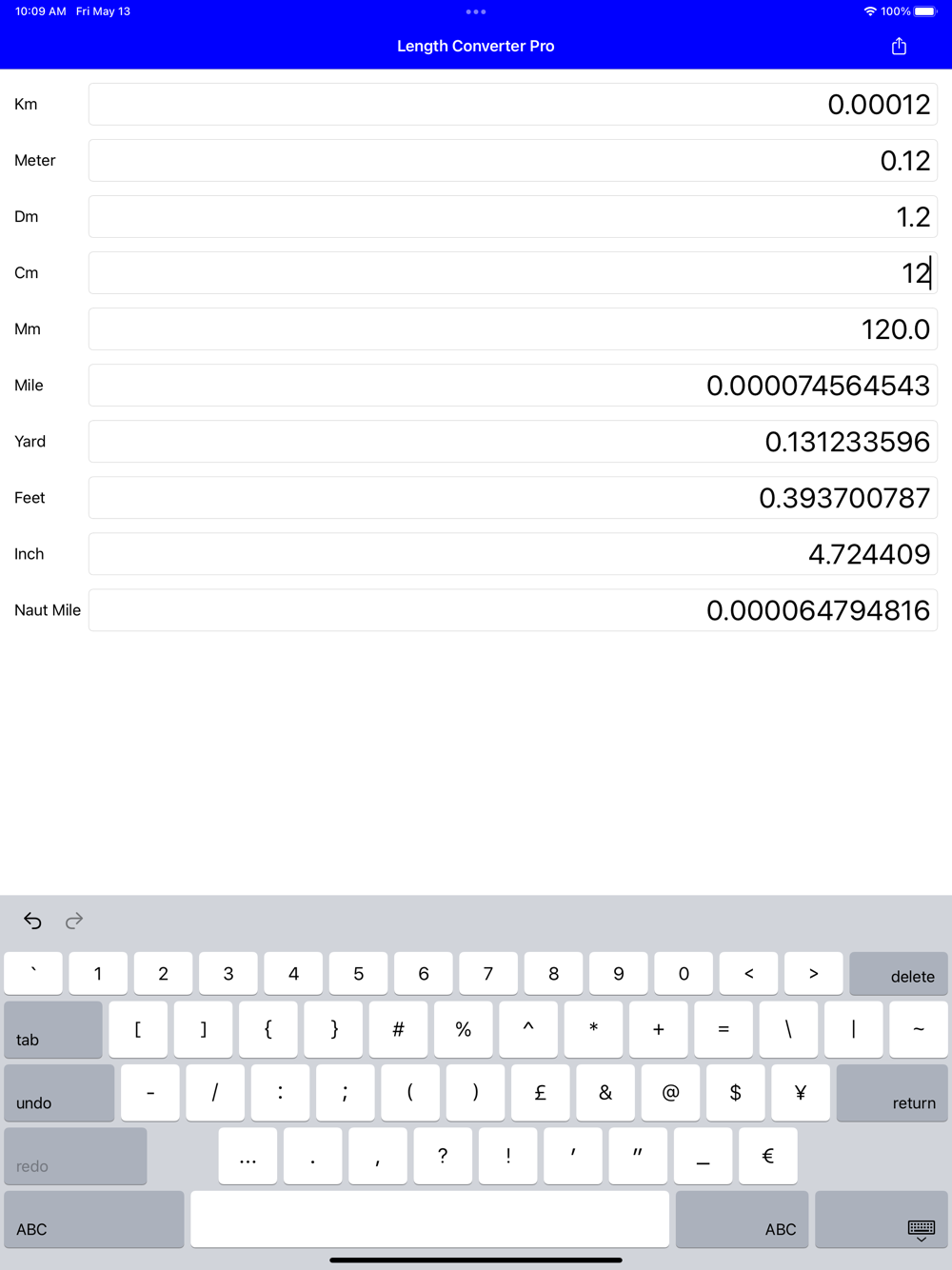 Length Converter Pro the fast length converter to convert for Feet, Inch, Kilometre, Mile, Yard, Meter, Decimetre, Centimetre, Millimetre, Nautical Mile in real time and without any hassle.
