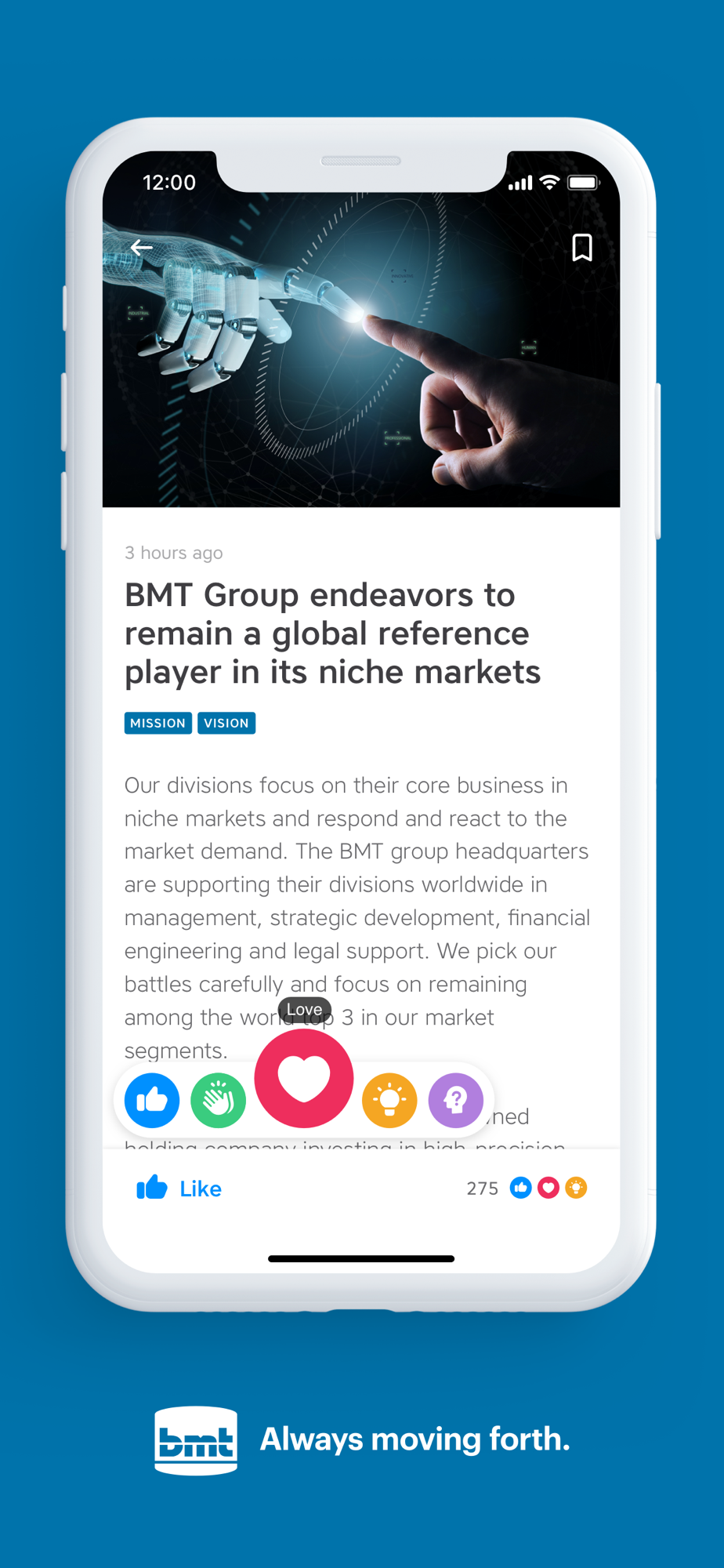 Discover Connect, your companion at the BMT Group. It's designed to keep you informed and up-to-date of all your company's news & communication.