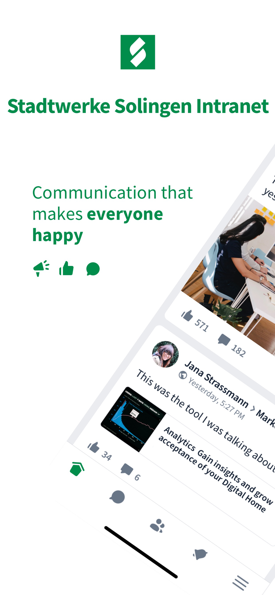 With the free app, you as an employee of Stadtwerke Solingen Supply and SWS Netze Solingen have access to the latest information from the company anytime, anywhere.
