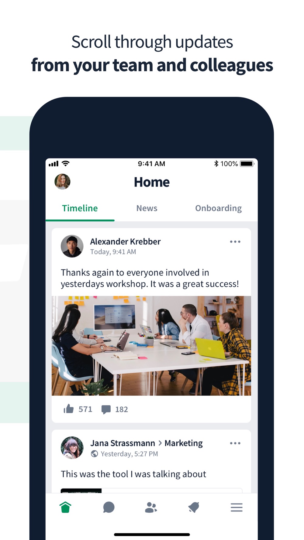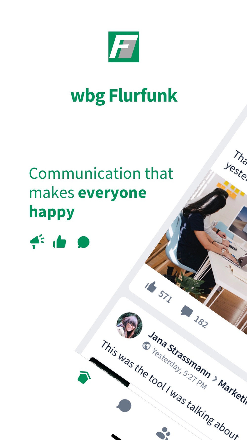 wbg Flurfunk is the social intranet of the wbg Nürnberg group. Via this app all employees have access to important company information. They are able to consume, create and share content and they can work together in workspaces.