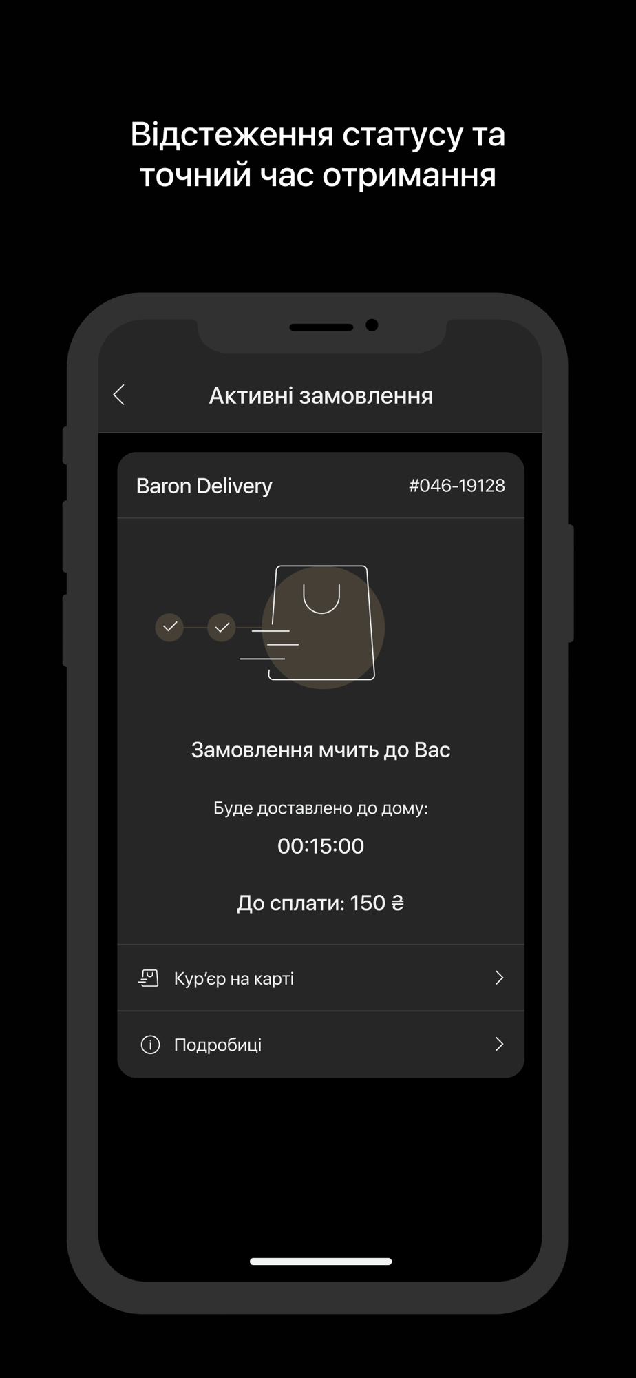 - відстеження статусу замовлення