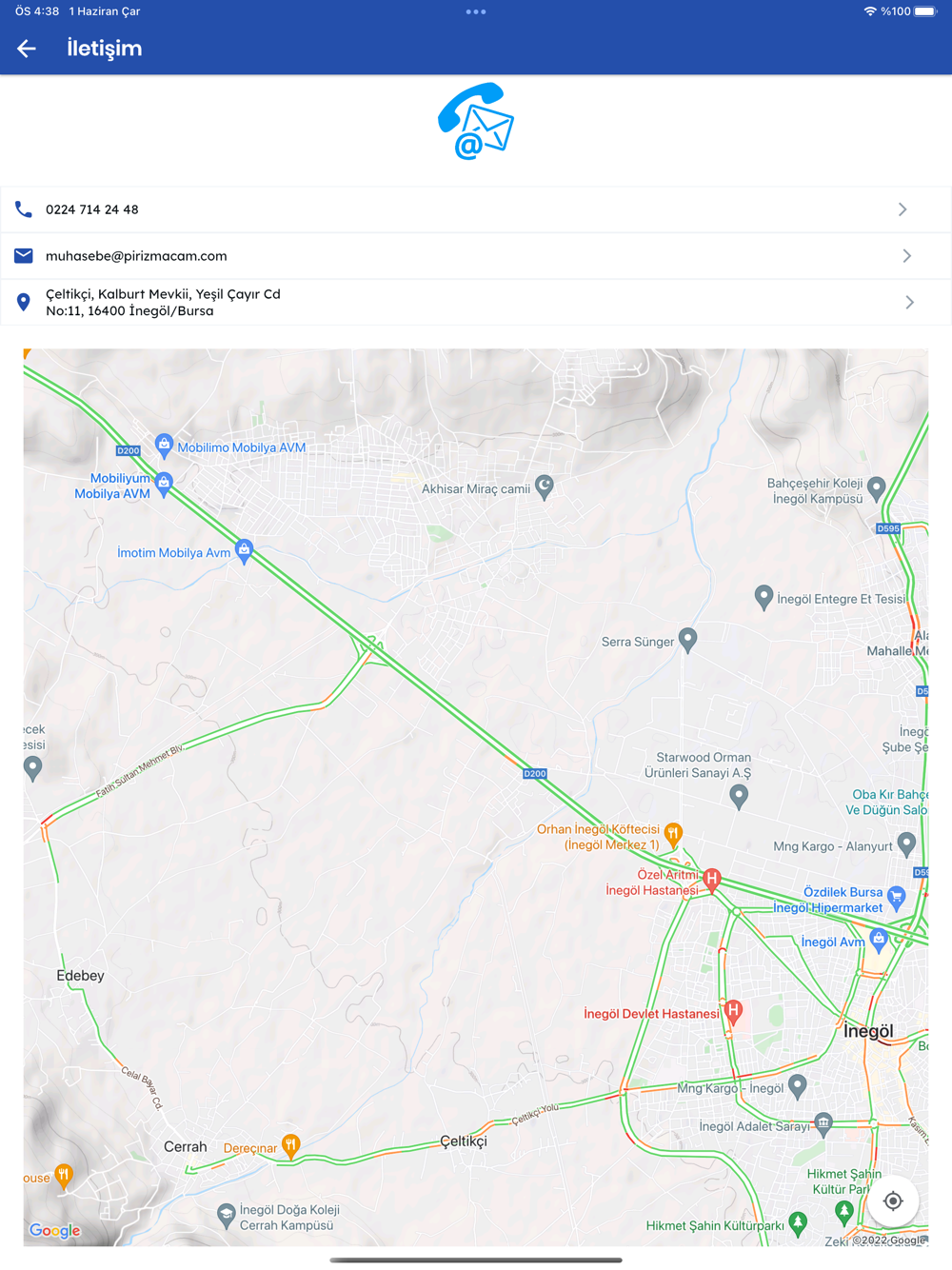 Pirizma Cam Ve Ayna cari bilgilendirme uygulaması.