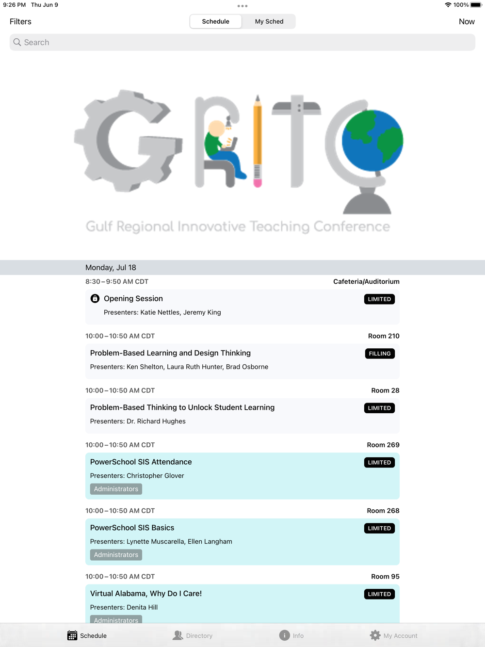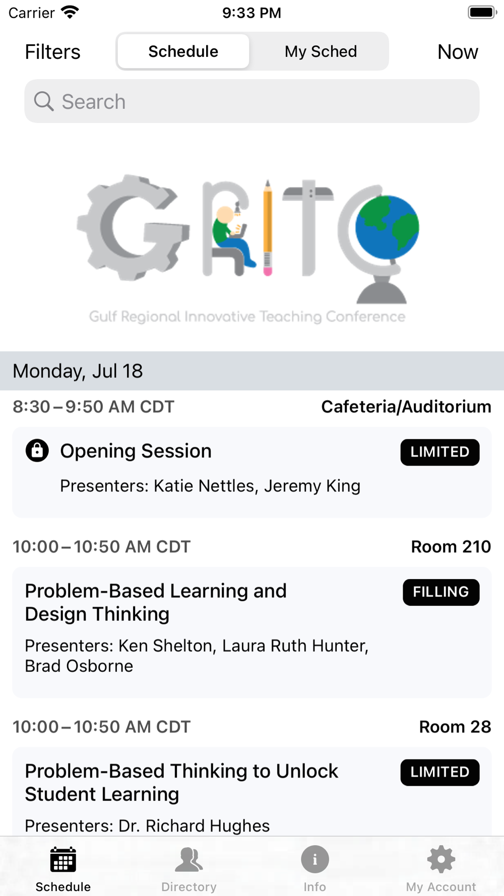 Conveniently browse the entire schedule for Gulf Regional Innovative Teaching Conference - GRITC 2022. Get the key information of your event without ever having to crack open an event guide.