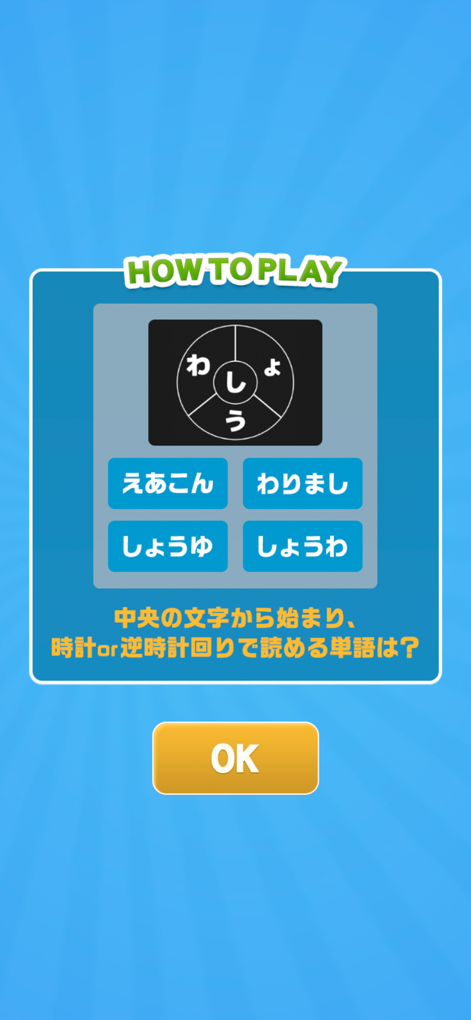 ルーレットの中央の文字から始まり、時計回りor時計回りで読める単語を見つけてください