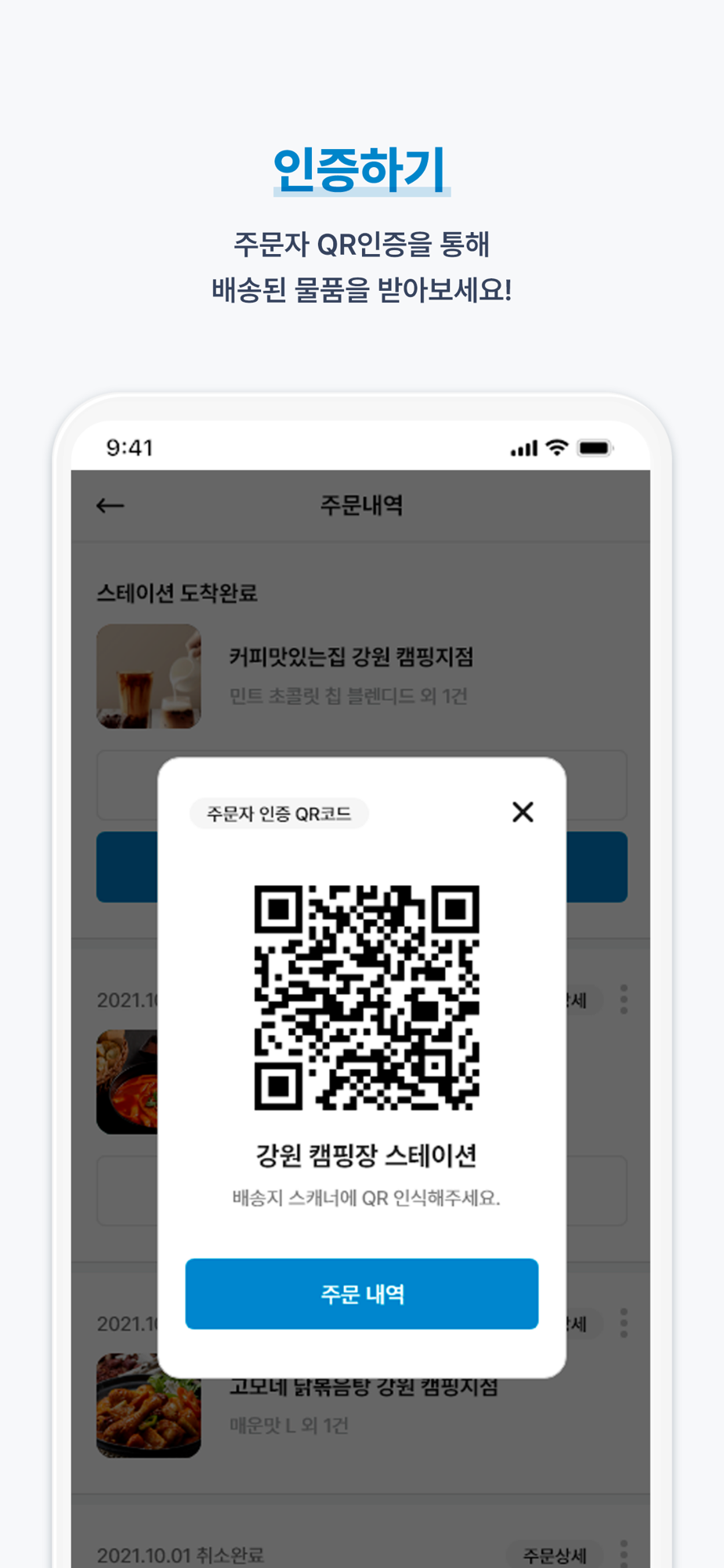 주문자 QR인증을 통해 배송된 물품을 받아보세요!