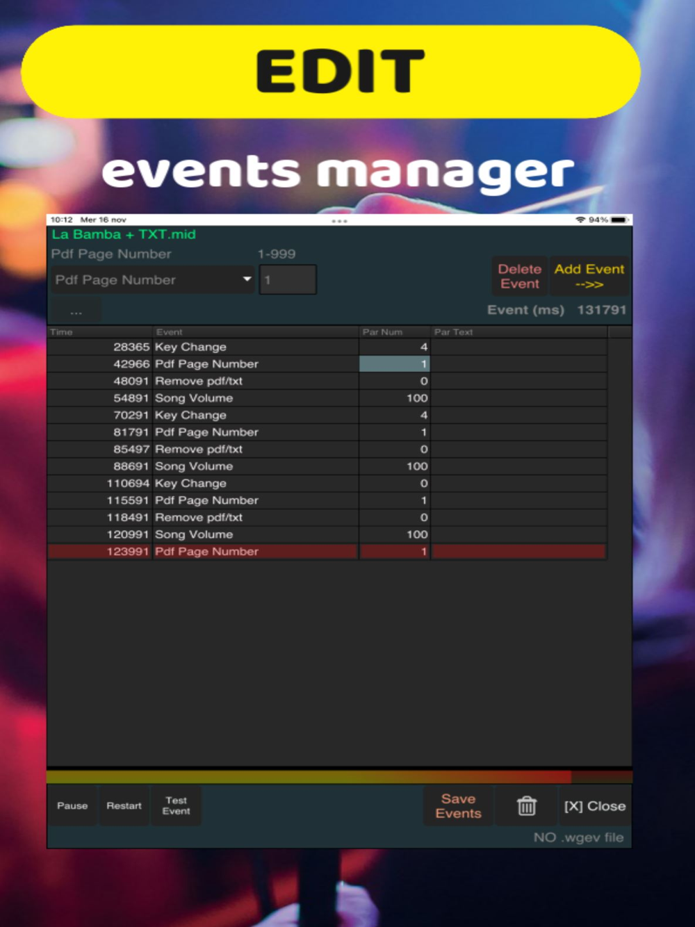 - Song list editor for set specific options for each song list( loop , melody muted for midifile, stop, random songs )