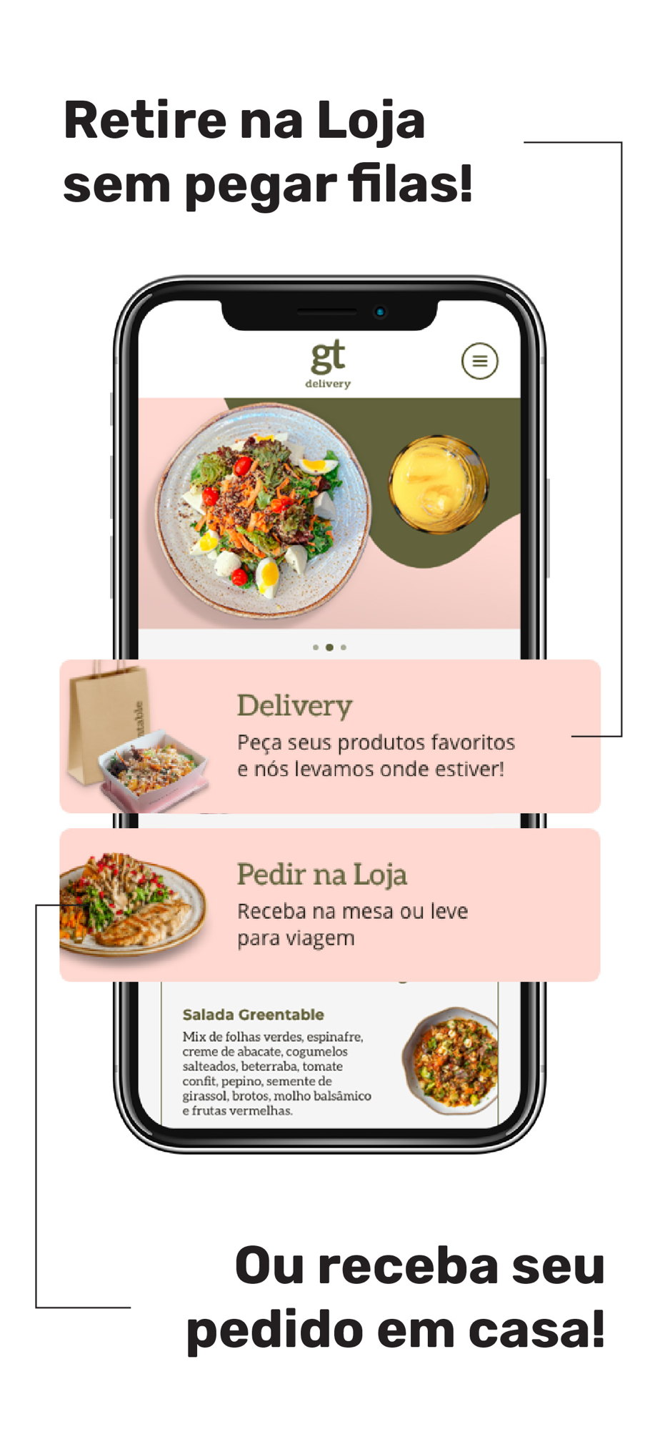 No App da Greentable, você paga e decide se prefere retirar na loja ou receber por delivery os produtos com a qualidade que já conhece da melhor comida saudável de SP.