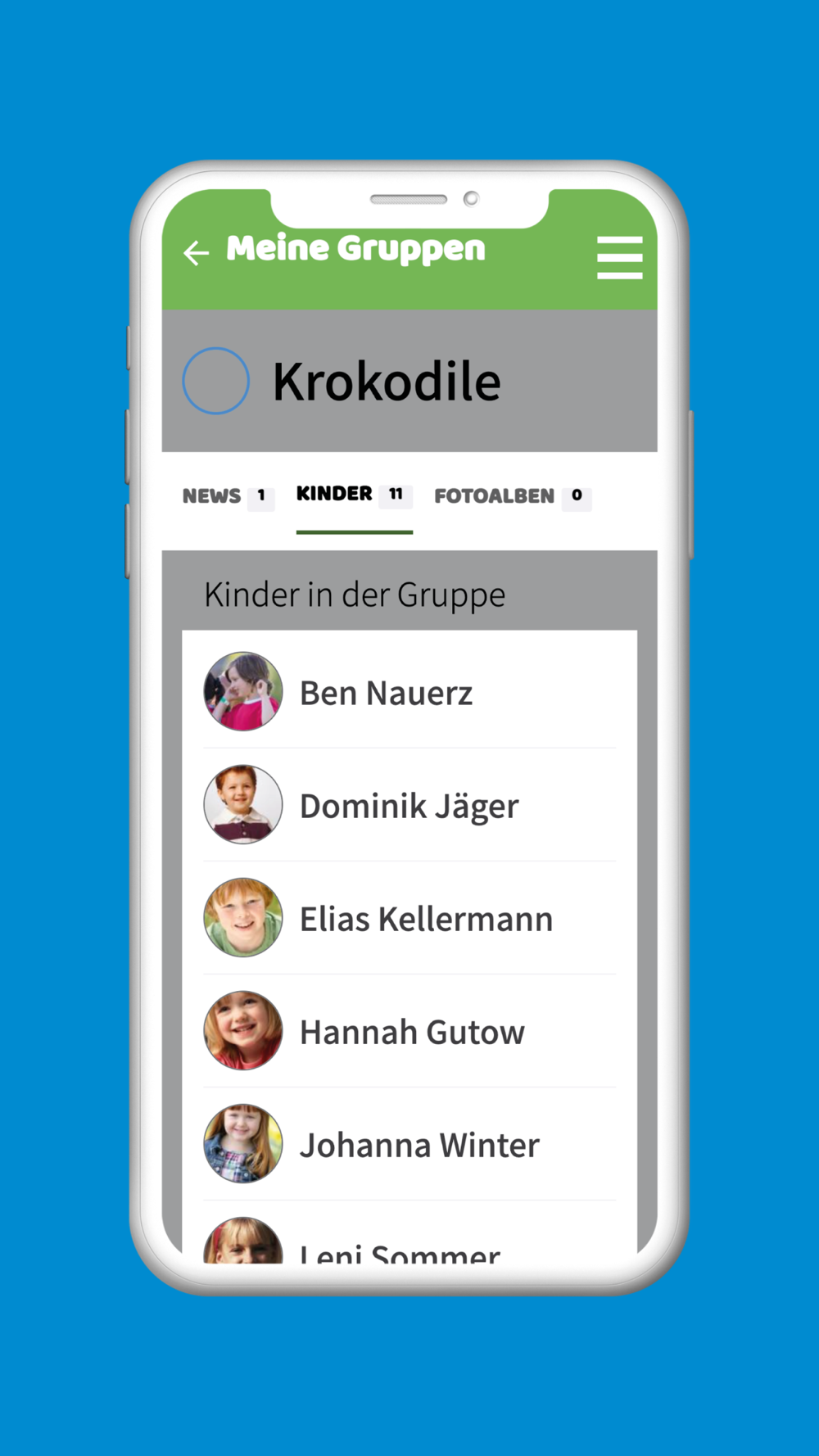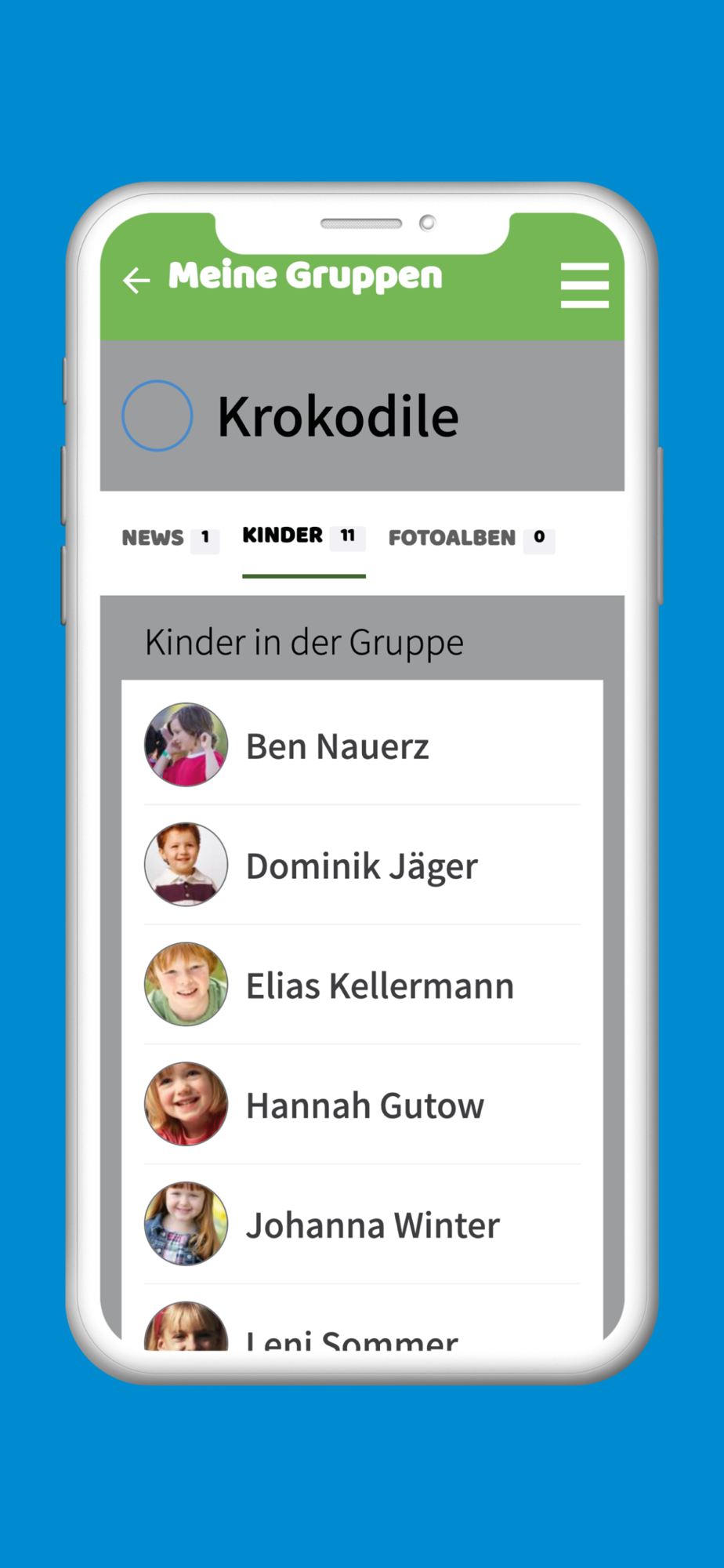 Das vorhandene Adressbuch ermöglicht es Ihnen, komfortabel mit anderen Eltern aus der Gruppe, den Betreuern Ihres Kindes oder mit der Leitung direkten Kontakt aufzunehmen. Zudem können Sie Profilbilder für Ihr Kind und für sich selbst hochladen und festlegen, welche Ihrer Kontaktdaten auch für andere Eltern sichtbar sein sollen.