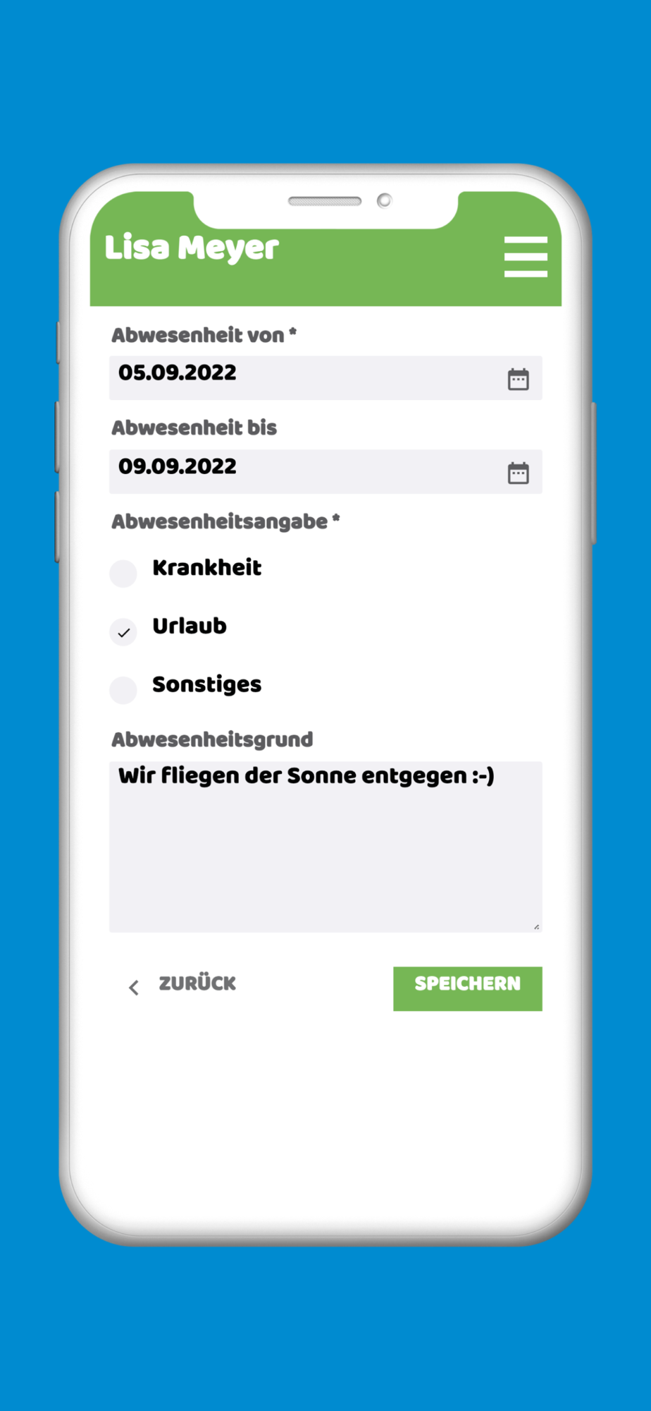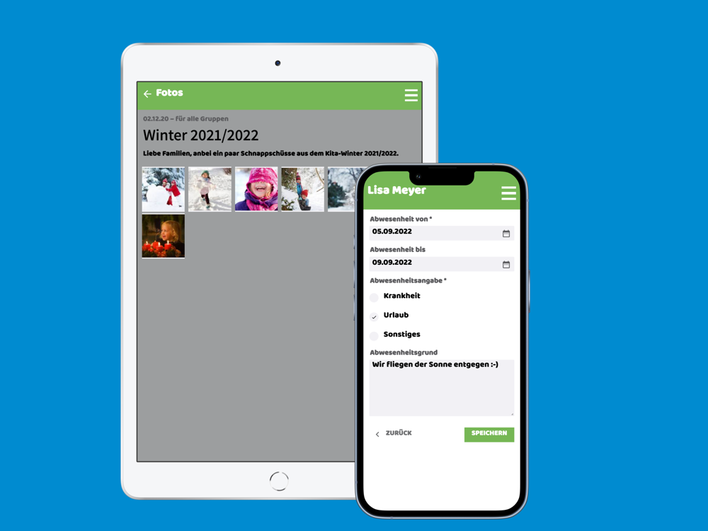 Wenn Ihr Kind z. B. wegen Krankheit den Kindergarten nicht aufsuchen kann, teilen Sie dies einfach und bequem über die integrierte Abwesenheitsfunktion der App den Pädagogen des Kindergartens mit.