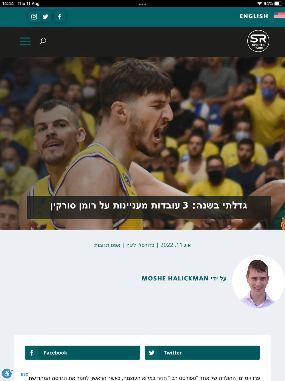 אתר “ספורטס רבי” מוקדש לסיקור ספורט ישראלי וספורטאים בישראל ומסביב לעולם. מכדורגל, לכדורסל, לספורט אולימפי ומעבר, ״ספורטס רבי״ מביא לך את כל החדשות, הניתוחים, הסרטונים והתמונות וכל השיח סביב הסיפורים שעושים את החדשות.