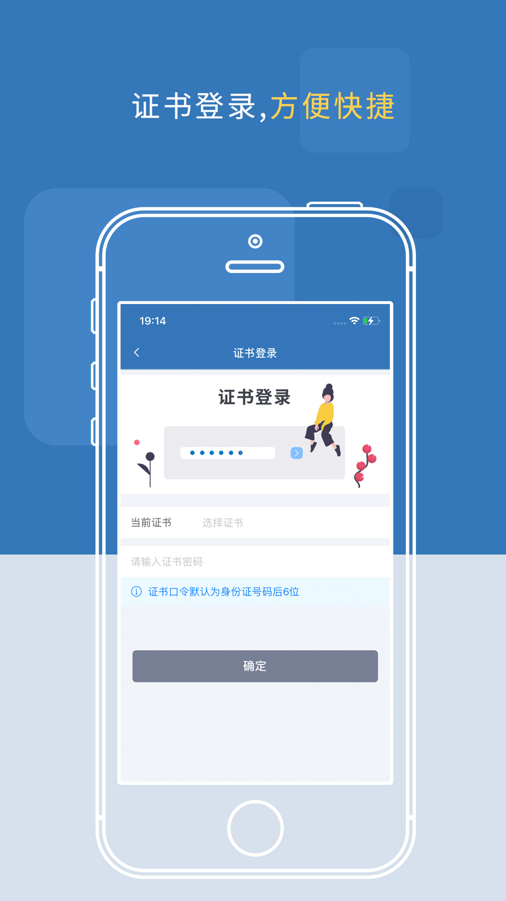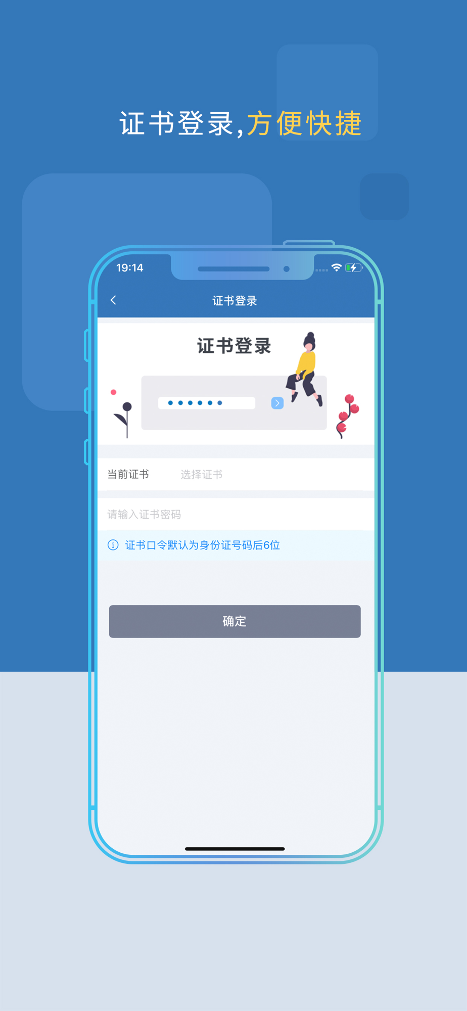 移动数字证书存储在手机,随身携带、安全保存、被授权后随时使用。