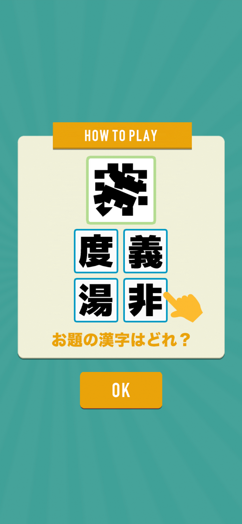 お題の漢字の足りないパーツを見つけてタップするだけ!