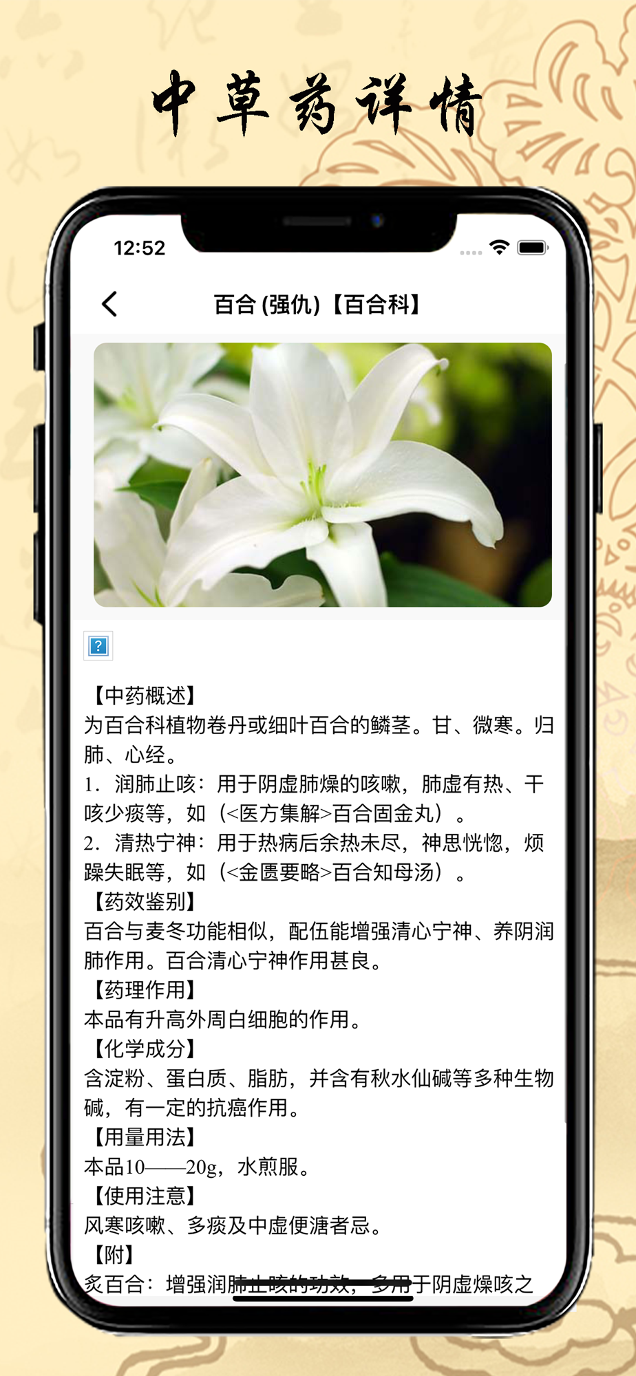 ● 中草药图文讲解 :药理、药效、特性、注意事项等一目了然;