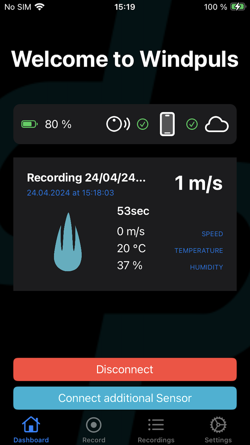 Wind is no longer an unpredictable disruptive factor - with Windpuls it becomes a measurable influencing factor. We are revolutionizing the world of wind measurement to help athletes, developers and the energy industry get the most out of the wind. The app connects to the Windpuls Sensor and allows for precise recordings: