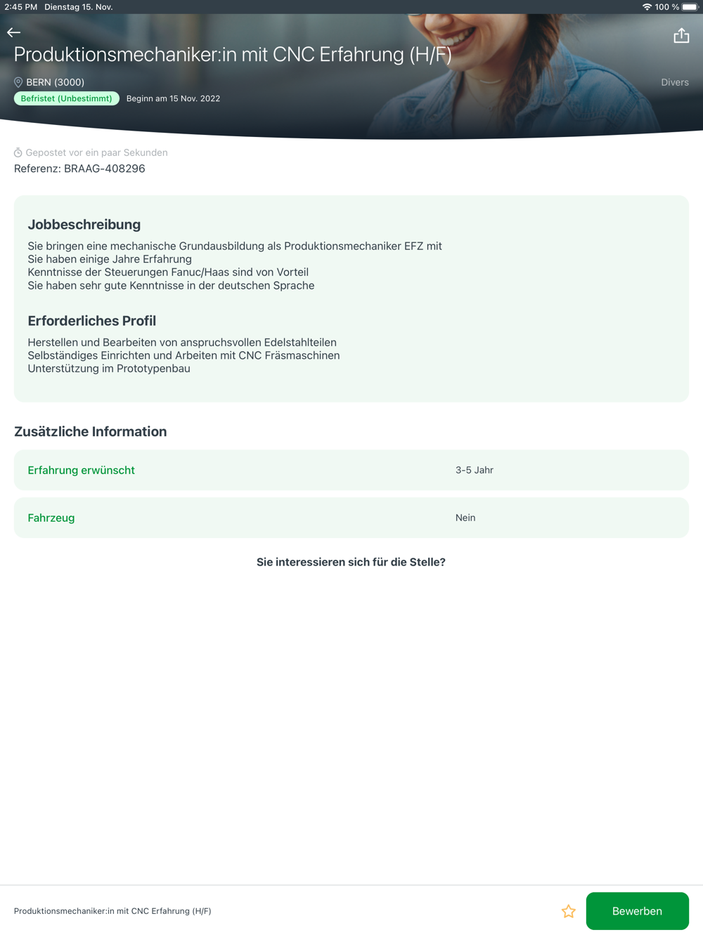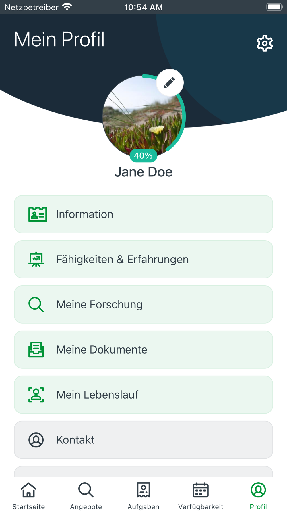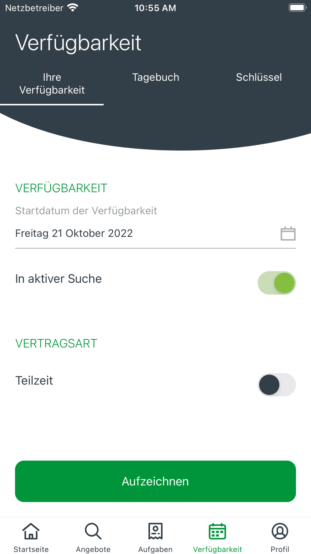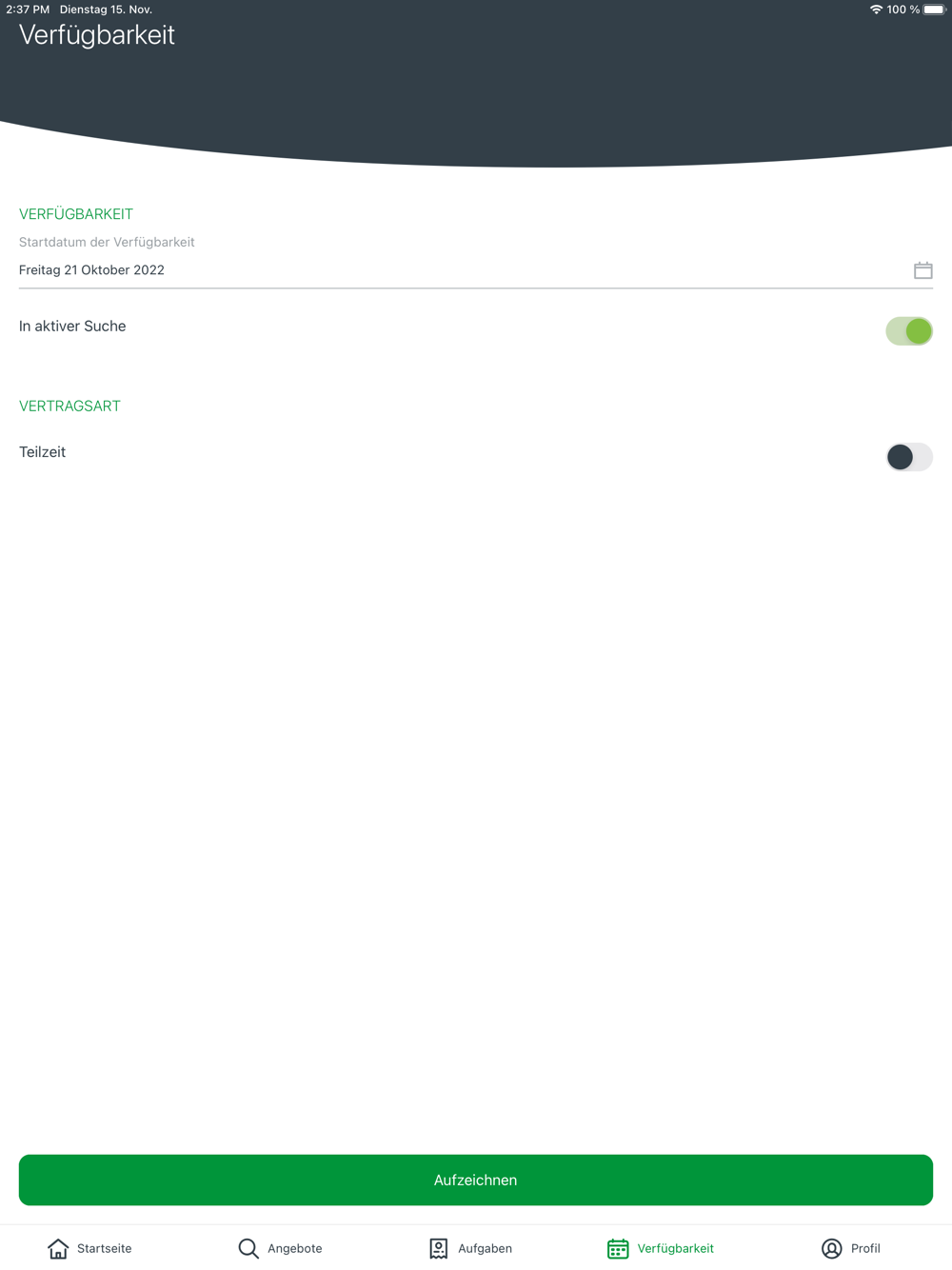 ● Füllen Sie in wenigen Minuten Ihr Profil in dem dafür vorgesehenen Bewerberbereich aus und geben Sie Ihre Verfügbarkeit an.