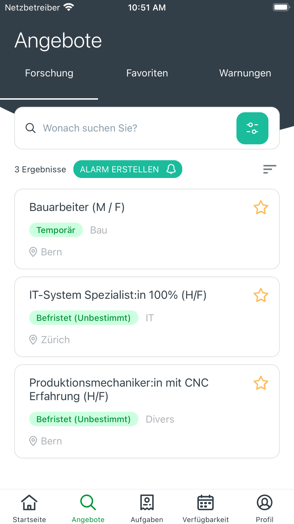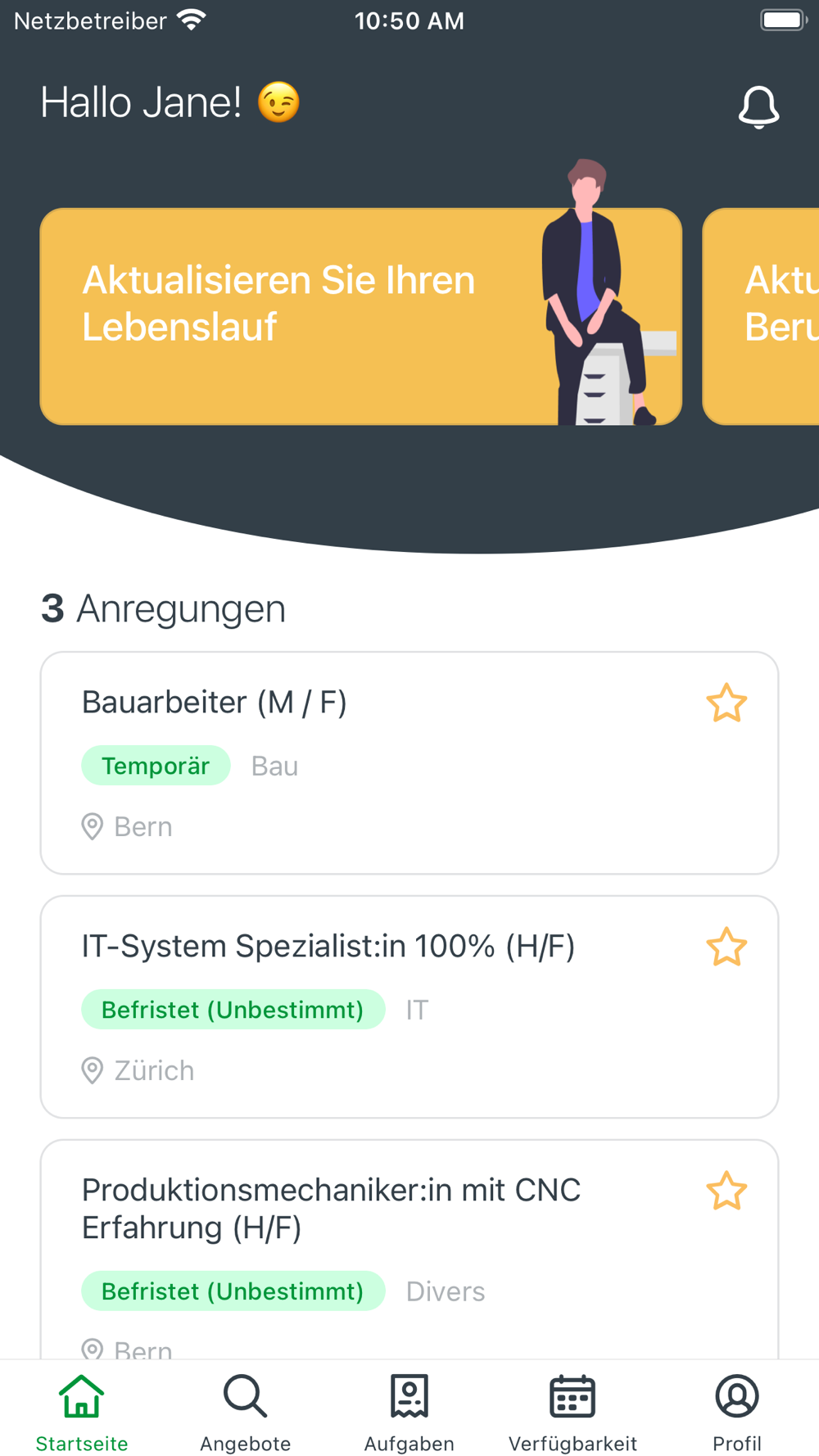 ● Erstellen Sie Ihre persönlichen Vorstellungen und erhalten so, alle Job-Angebote, die Ihren Kriterien entsprechen.