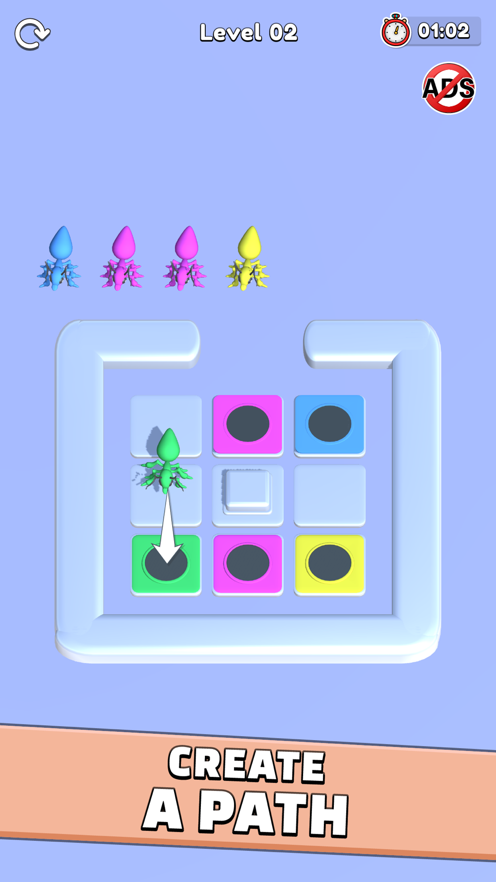 Insect Jam - Ant Fill The Hole is a color-sorting puzzle game that will test your strategic thinking and sorting skills. In this colorful insect game, you'll create a clear path for each insect to reach its matching hole.Swipe, shuffle, and rearrange the positions of the holes to create clear pathways for the insects. With each move, you must carefully strategize to ensure that insects of the same color can reach their corresponding holes without any obstacles blocking their way.The game offers a variety of levels, each presenting increasingly complex arrangements of holes and insects. As you progress, you'll encounter new obstacles and challenges that will put your sorting abilities to the test.The mechanics are simple yet addictive: swipe left, right, up, or down to move the holes around, aligning them to create pathways for the insects. As you advance through the game, you'll need to anticipate the movements of different colored insects, strategizing several steps ahead to clear the paths effectively.With colorful graphics, engaging gameplay, and progressively challenging puzzles, Insect Jam - Ant Fill The Hole is a must-try for puzzle fans who want to explore an innovative puzzle idea. Get it now for a colorful sorting adventure and become the ultimate sorting master.