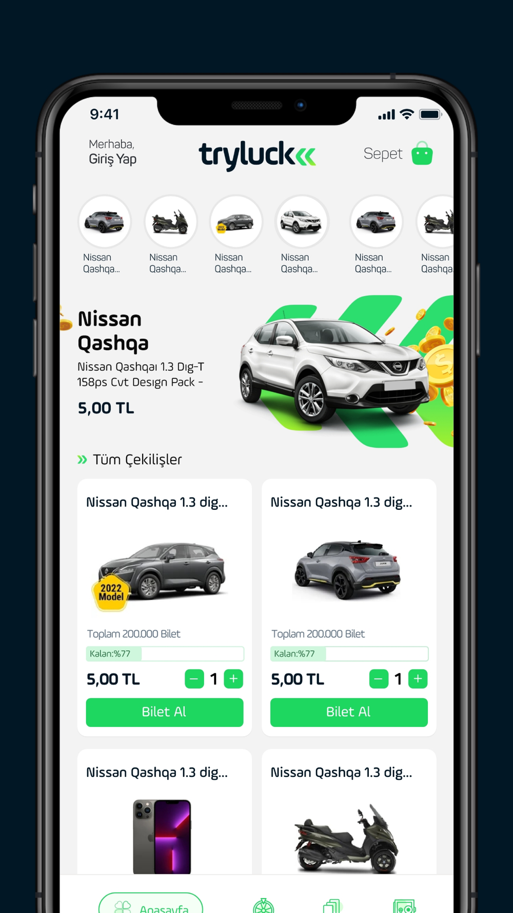 If you are confident in your luck and want to win a house, a car, a vacation, a cellphone, and many more, download the Tryluck app now!