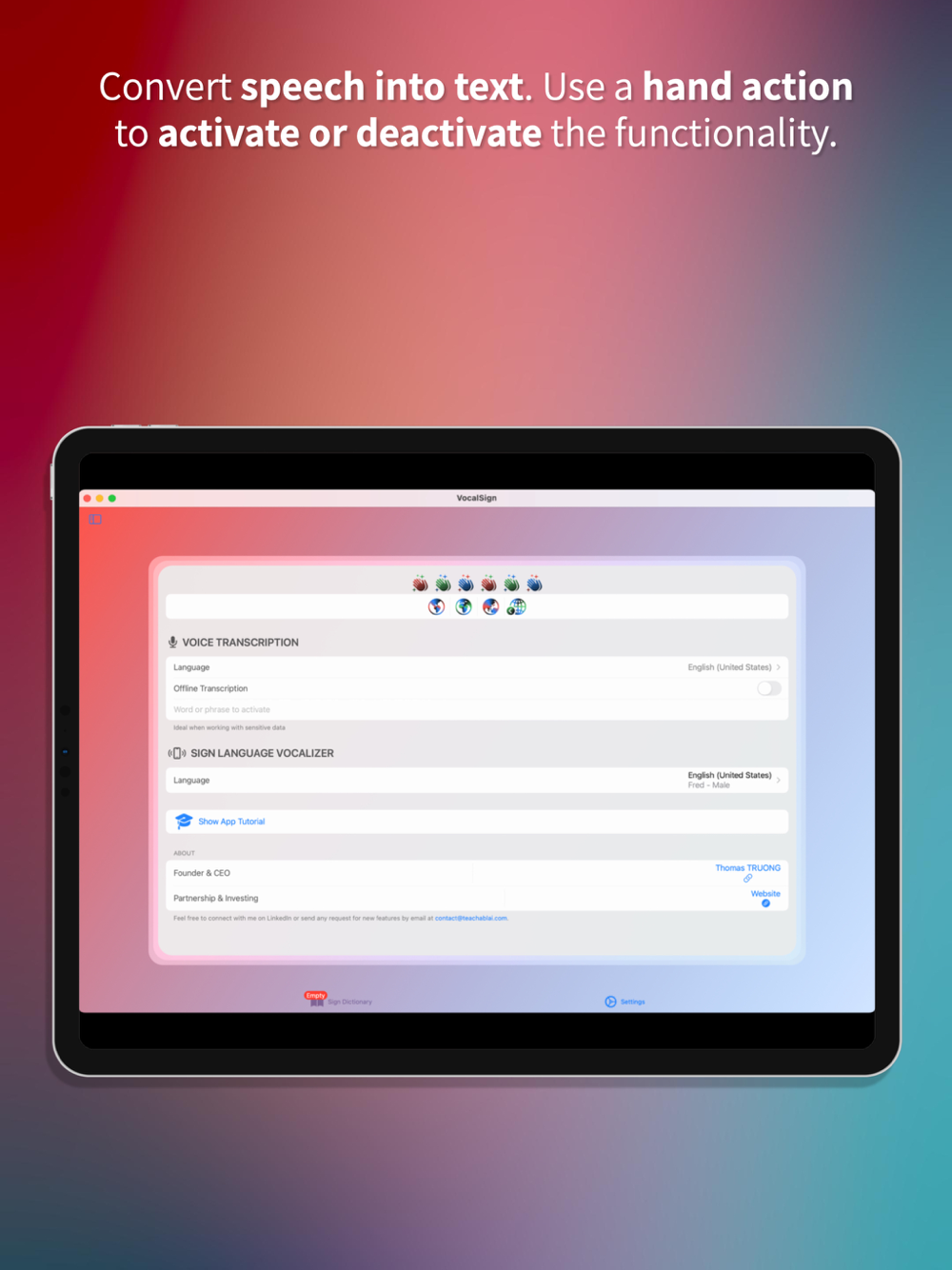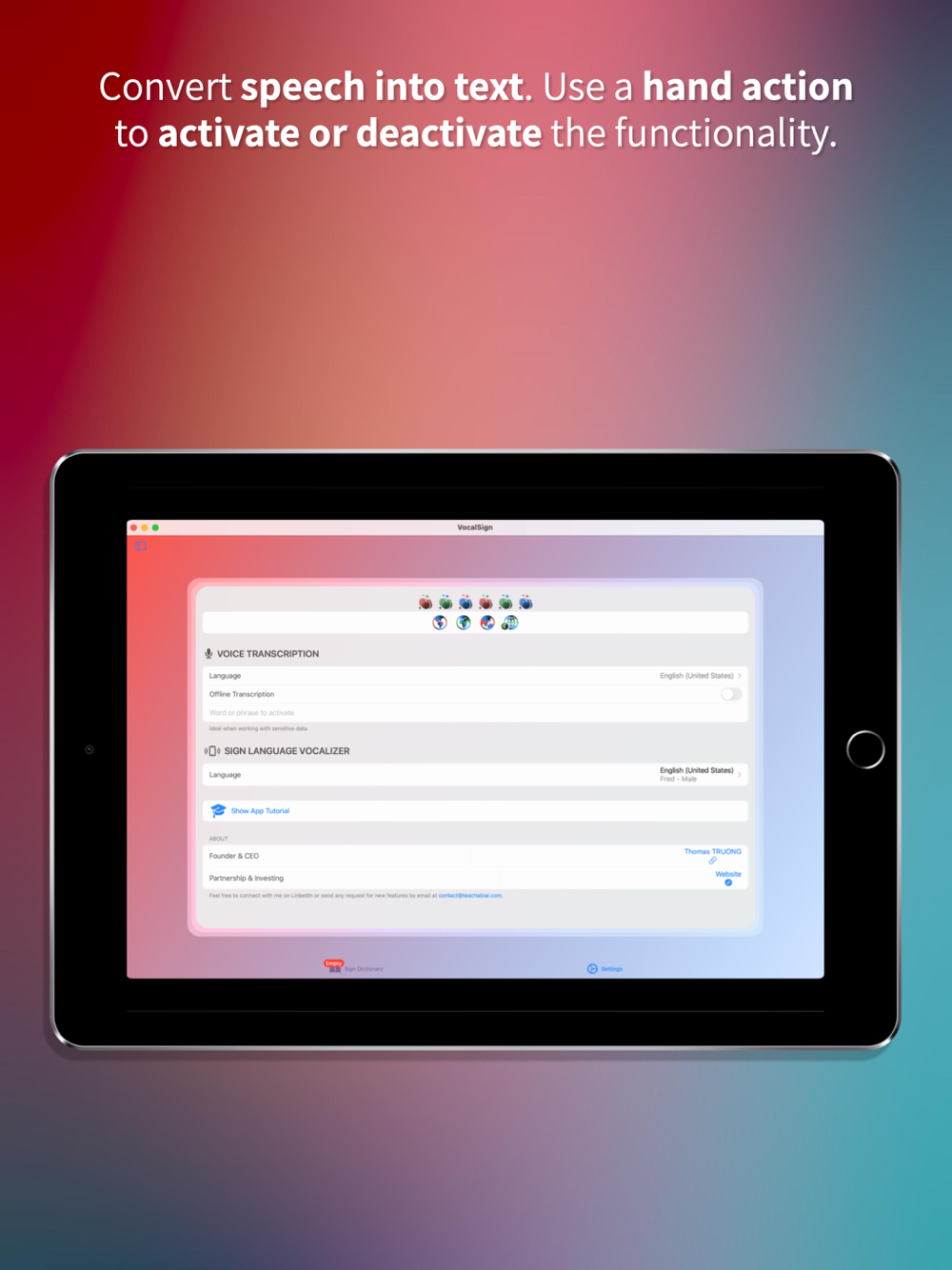 VocalSign is not merely an application—it is your ally on a transformative odyssey toward boundless interaction. In this space, every sign is vocalized, every motion conveys a tale. Embark on this avant-garde expedition with us. Together, we will craft a symphony where every sentiment is acknowledged, every sign is heard, in every conceivable language and gesture. With VocalSign, you're not just punctuating the silence; you're composing an anthem of unity and understanding.