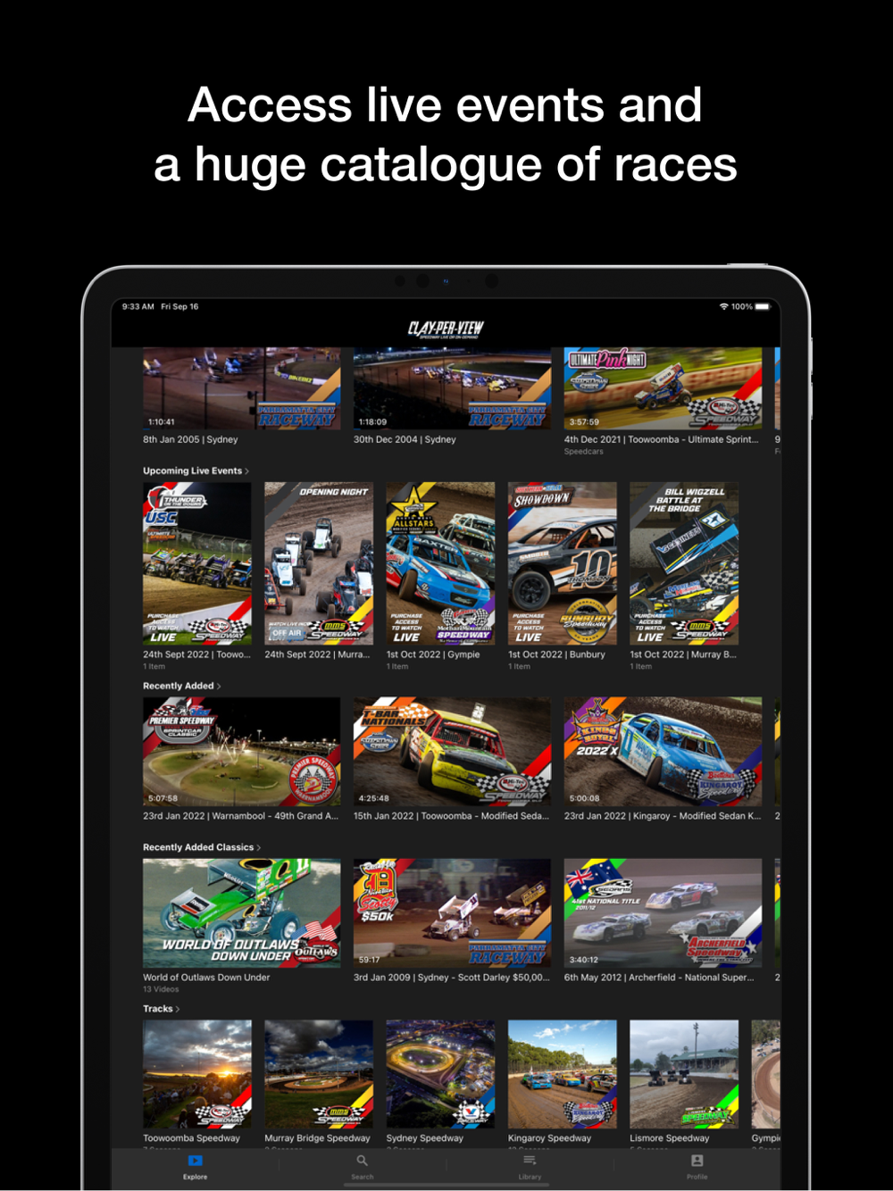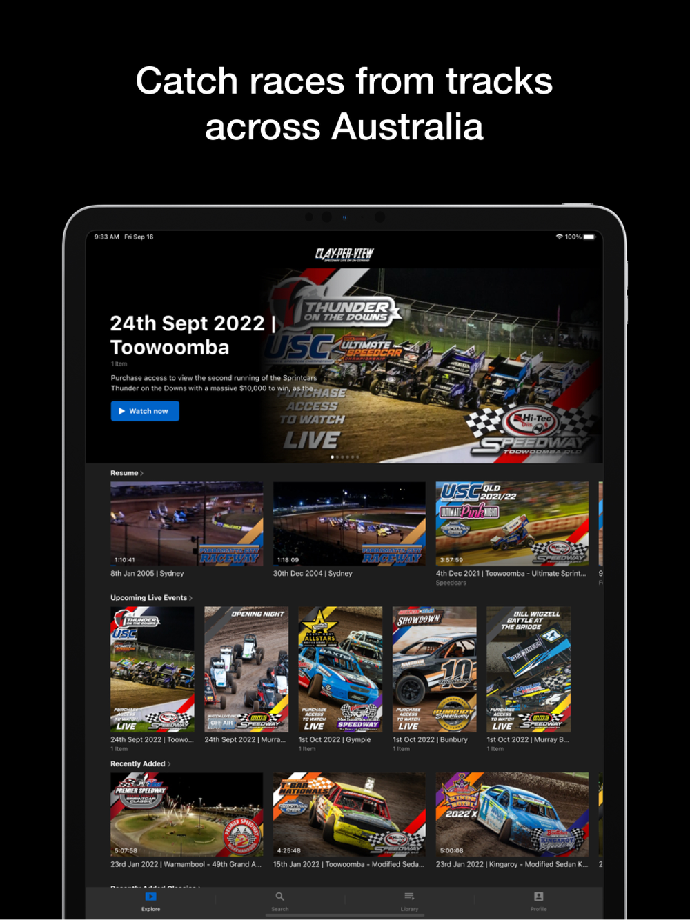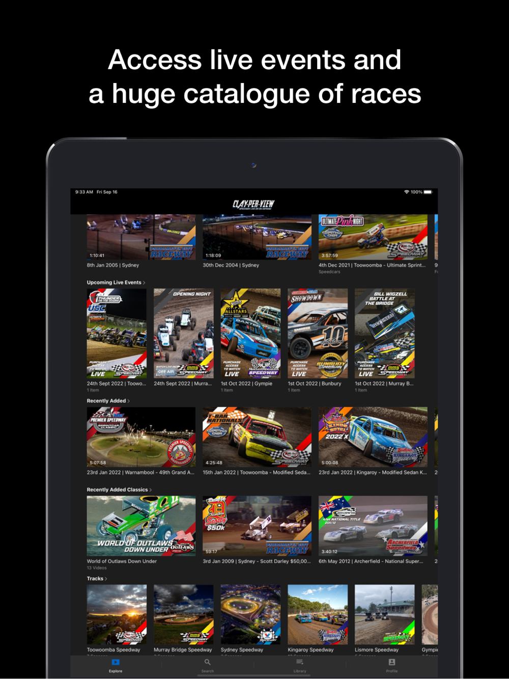 A ClayPass offers access to every single speedway event on-demand, including racing series such as the Ultimate Sprintcar Championship, Modified Sedan Allstars Series, Ultimate Speedcar Championship, Southern Sedan Showdown, and more including access to some live events, and every pay-per-view after the event.