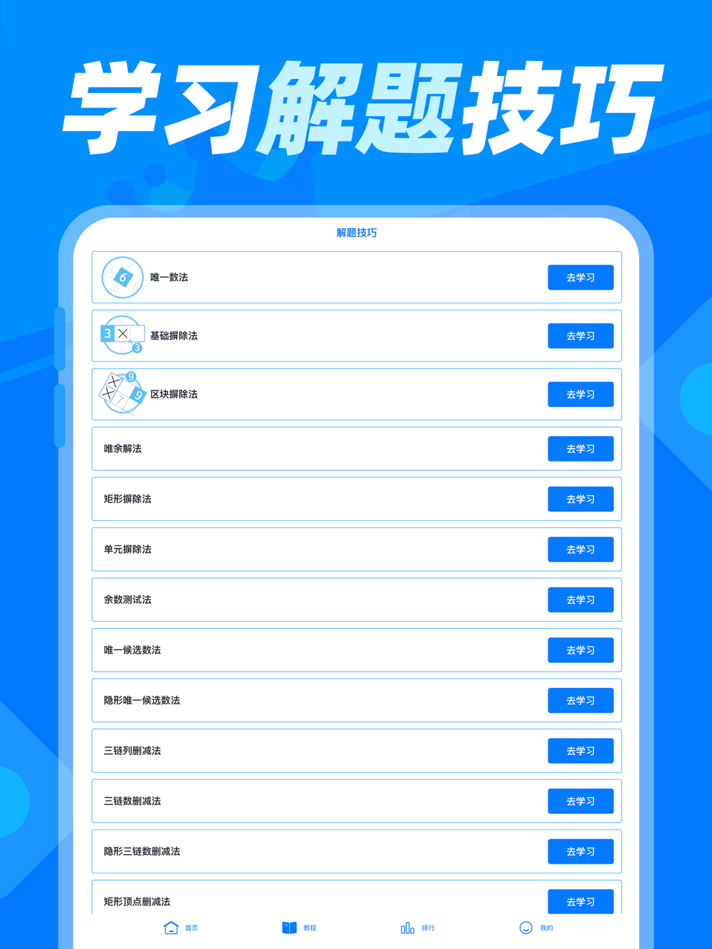 5.“解题技巧”提供多种数独解法教程,从基础到高级,助初学者快速成长为高手。