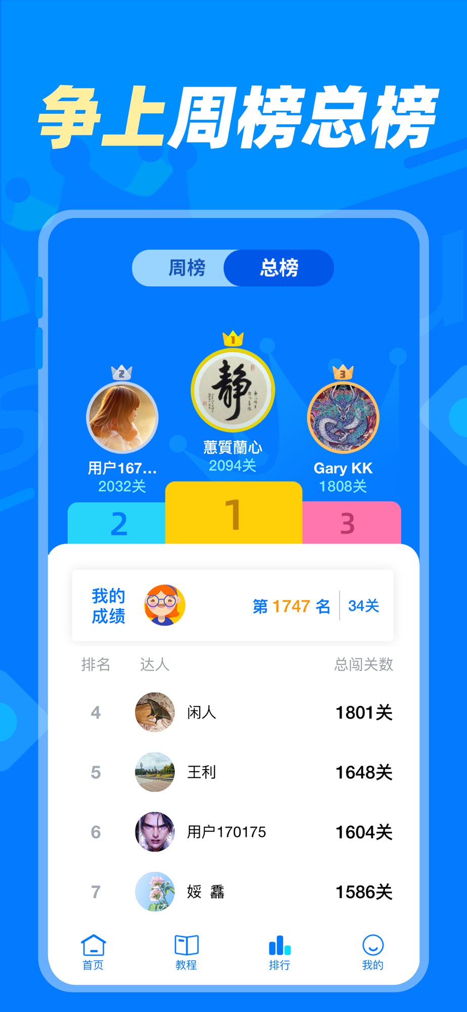 7.我的成绩,全方位记录自己每一题的闯关成绩,清晰展示自己的成长之路