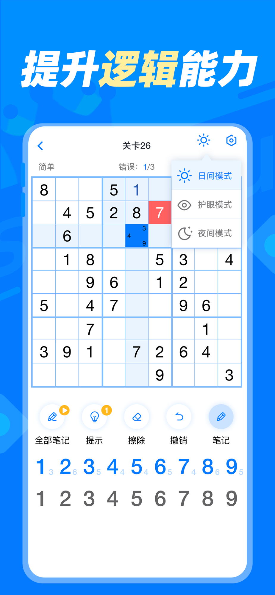3.经典数独超过6000道题目,分为四个难度等级,为不同程度的用户提供不同难度的题目。