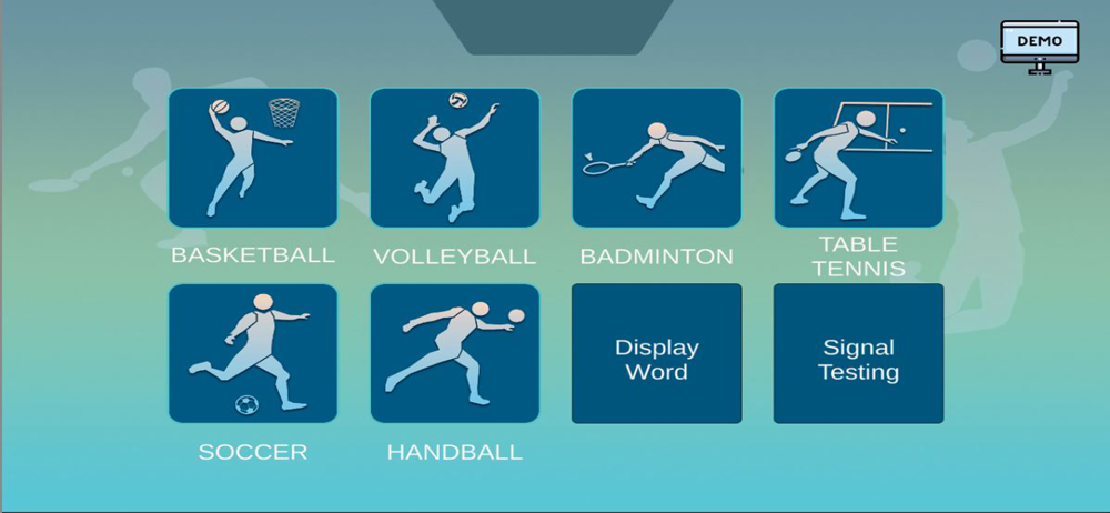 Badminton, Soccer, Handball, Basketball, Volleyball and Table-tennis.