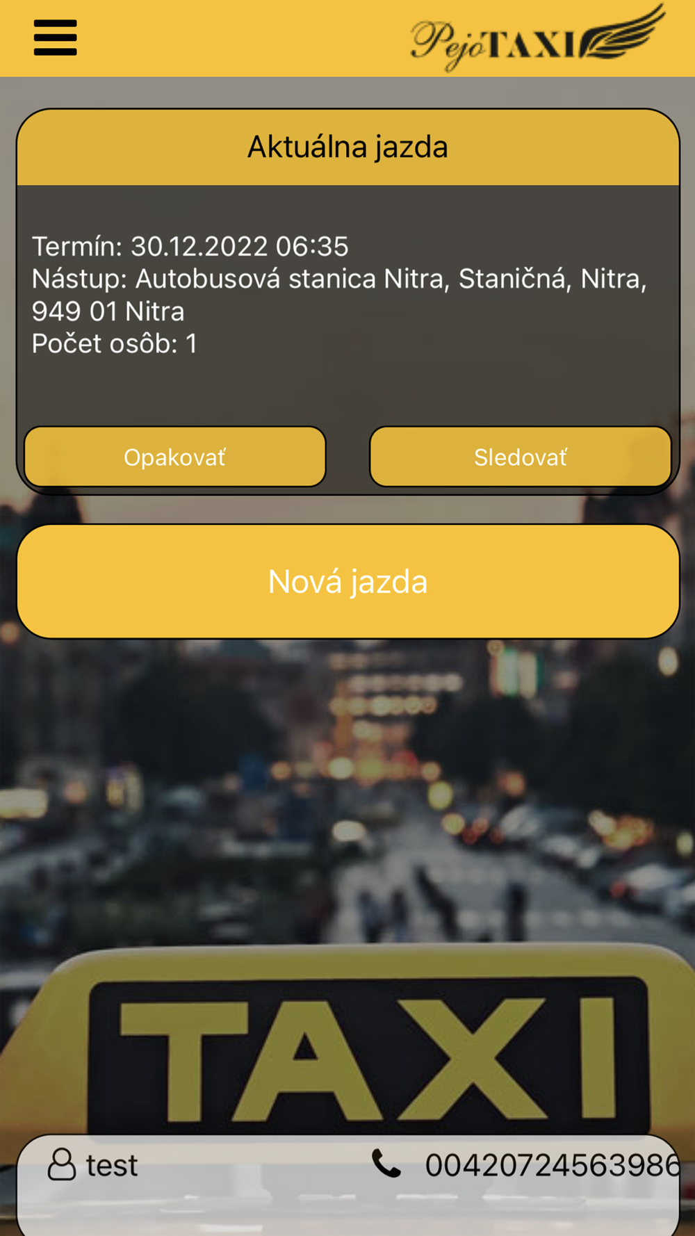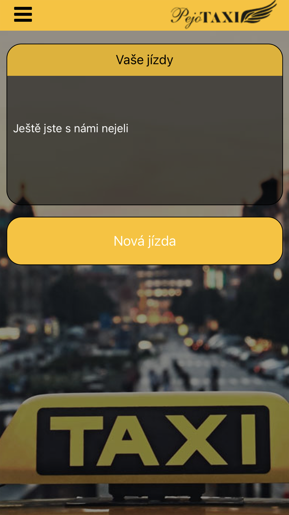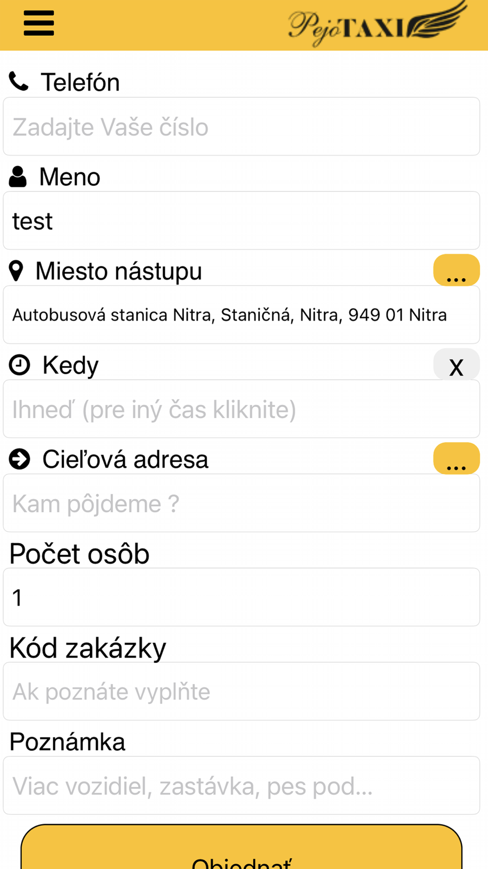 Aplikácia umožnuje využívať služby taxislužby PejoTAXI,