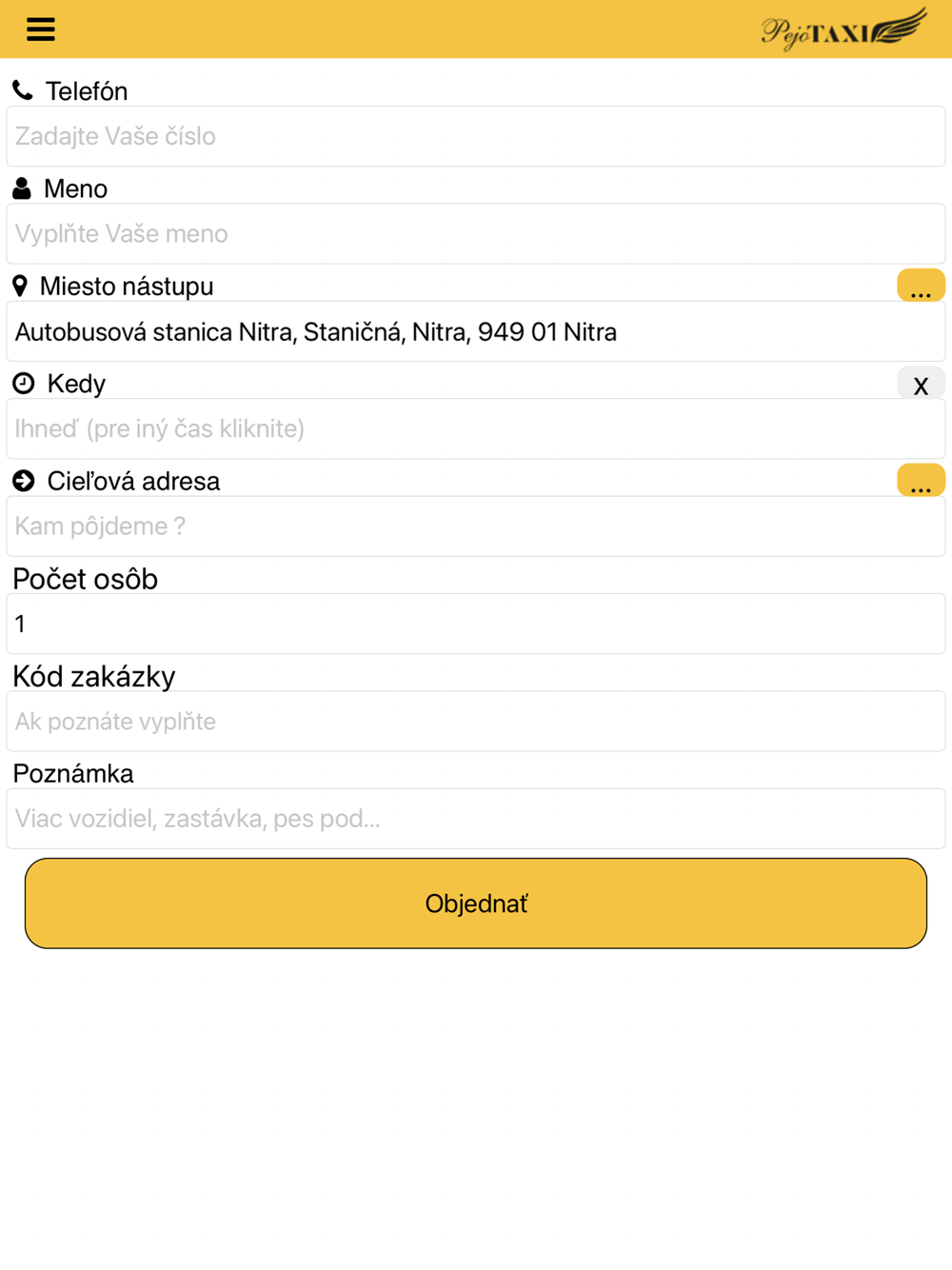 objednať taxi na vopred stanovený dátum ale i ihned.