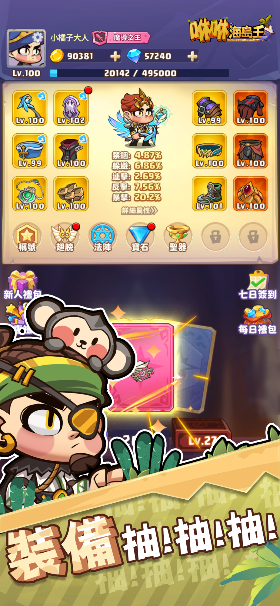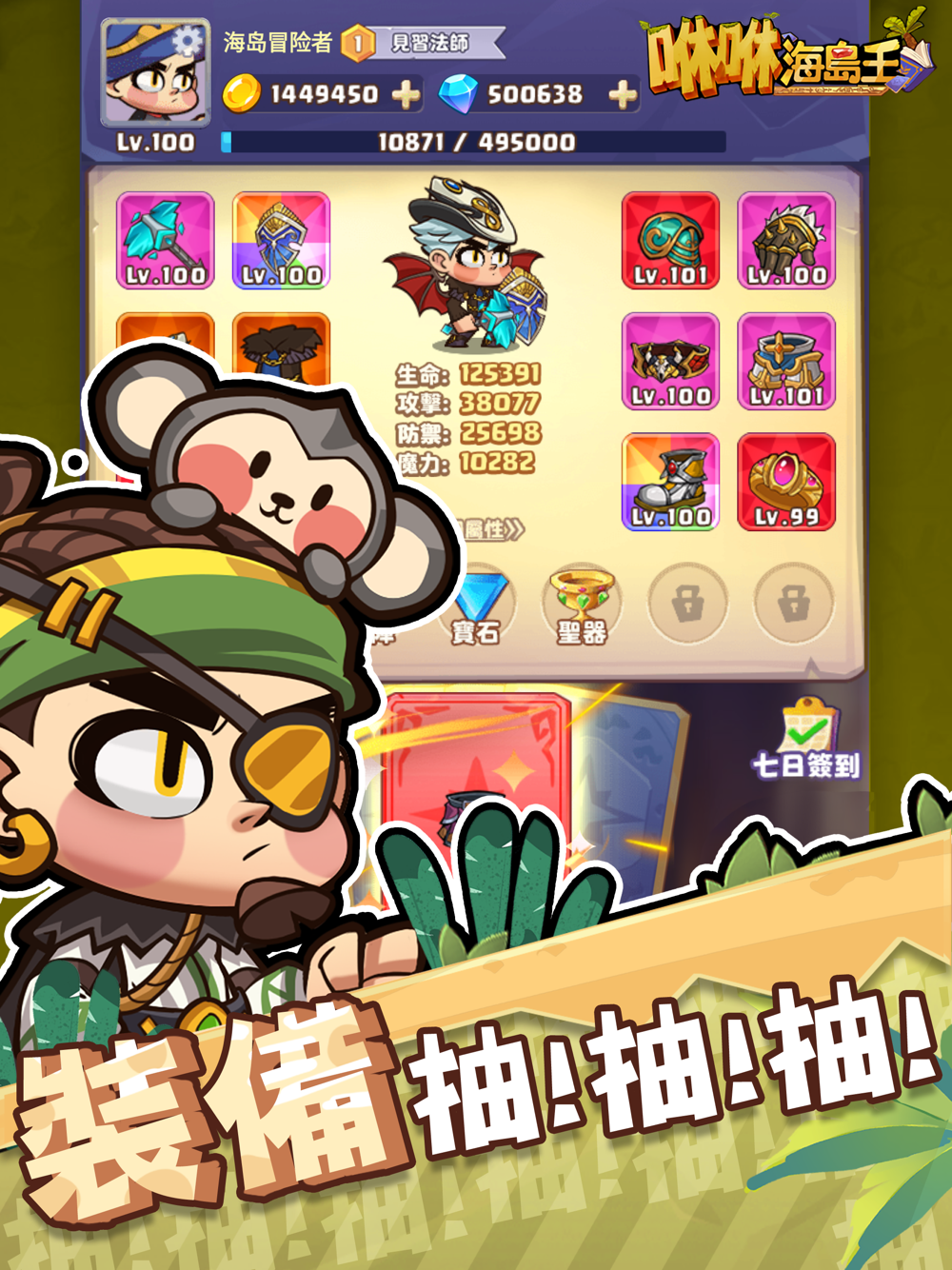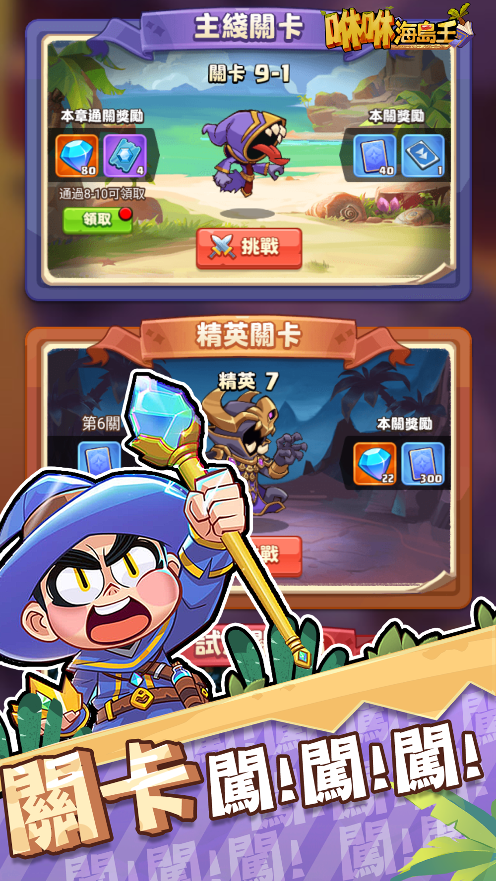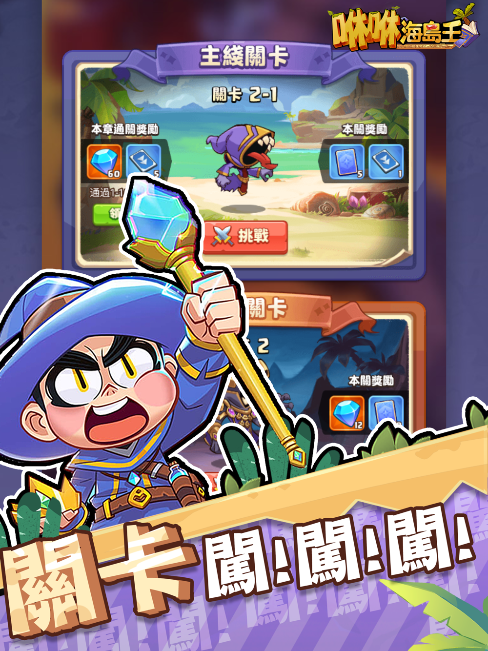 高品質裝備爆率高,多屬性流派,即時資源掠奪成為咻咻海島王吧!