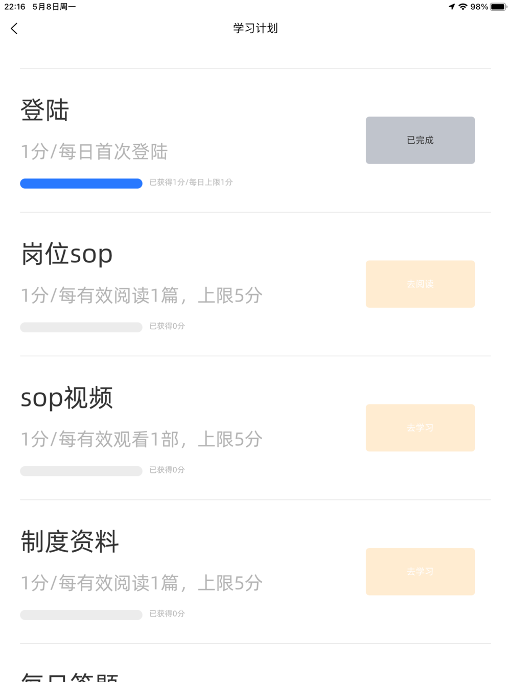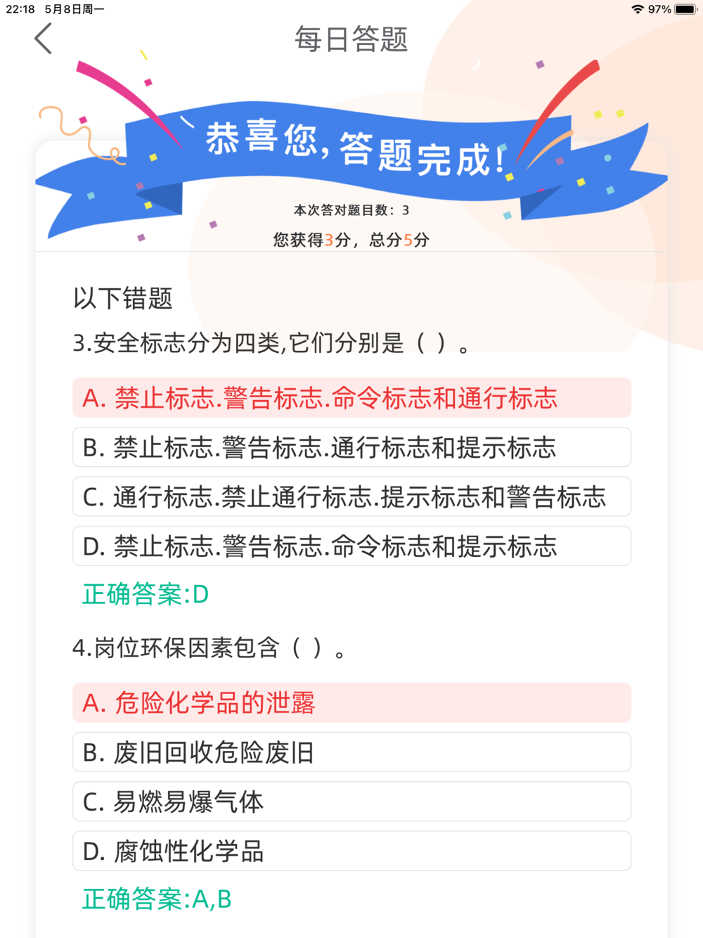 1、新增管理人员答题模块,并纳入学习任务,可在【学习】-【学习计划】内可查看任务及答题完成情况(每月至少答对200题视为完成,可多答)。2、新增红旗班组答题模块(具体答题规则待定,暂不实施)。3、修复前期答题规则调整后一些报表查询逻辑不匹配问题。4、修复点巡检列表“停机”状态显示为“正常”问题。5、取消点巡检提交时的强制校验,实现点巡检设备内的每个项目可不用全部填报也可提交。6、修复通用工种任务完成逻辑与管理要求实际不符问题。