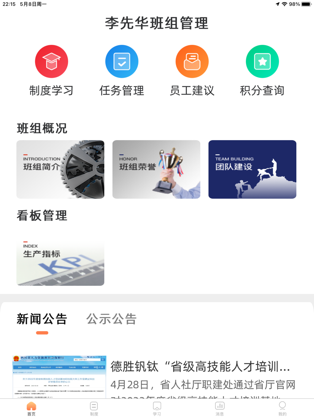 用于通过信息化手段,充分利用信息化工具,优化解决公司班组管理及管理流程等。