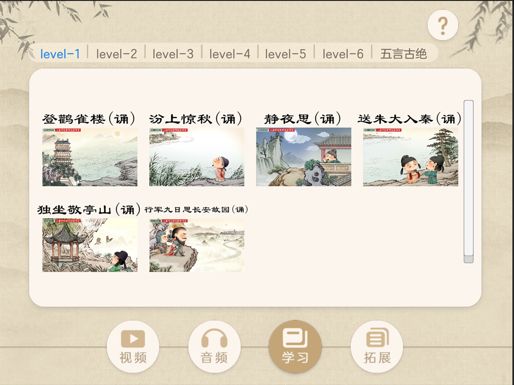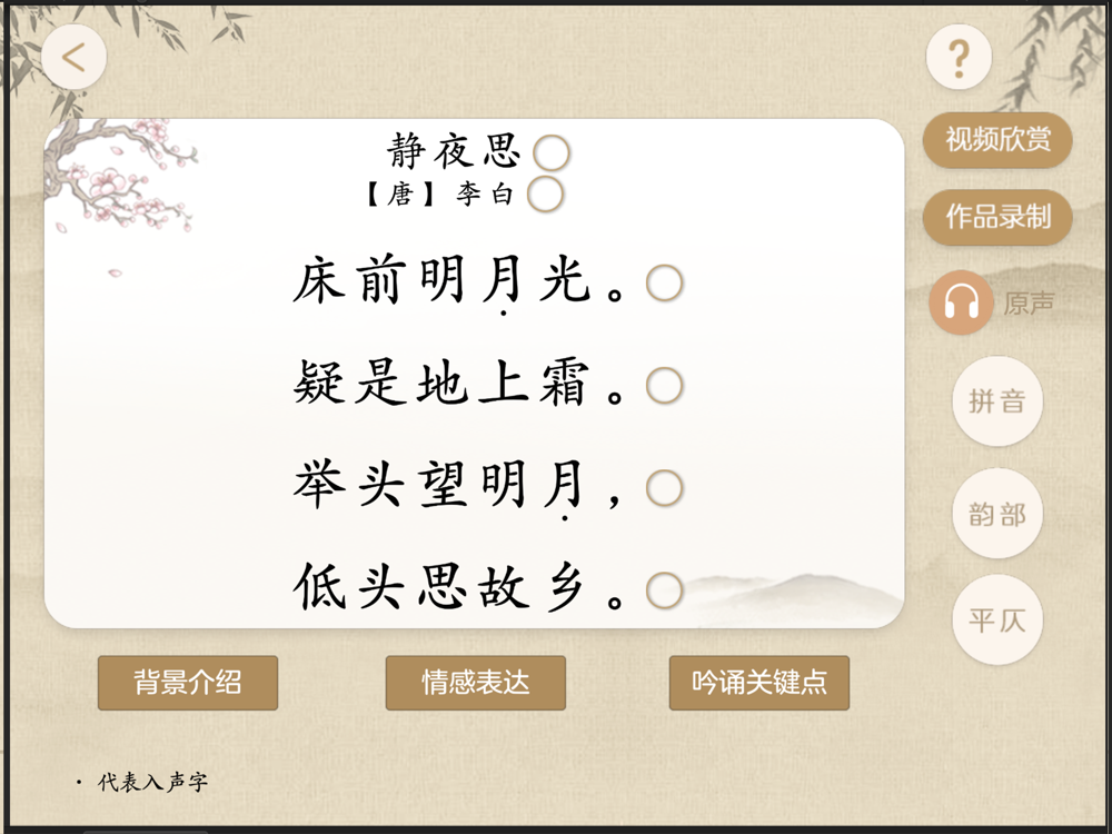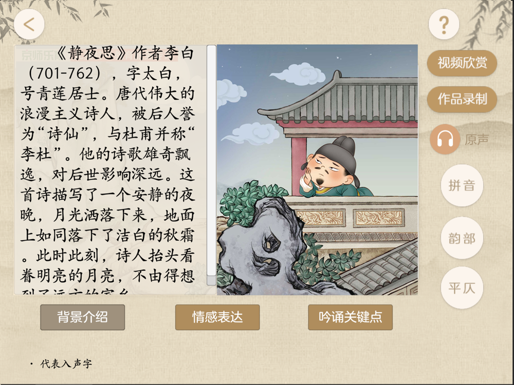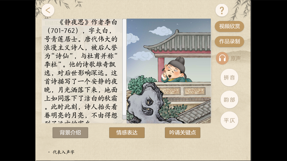 一款吟诵欣赏App,内含42首千家诗内古诗的吟诵视频。