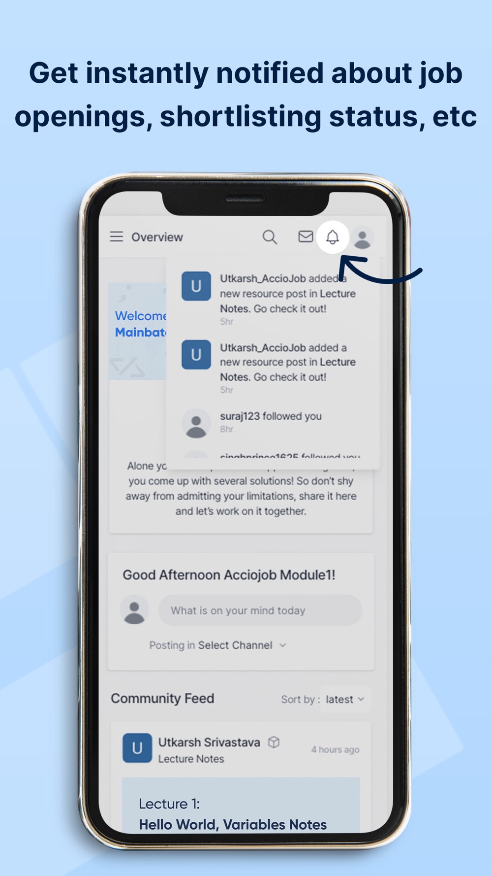 "Welcome to the Community Platform of AccioJob!