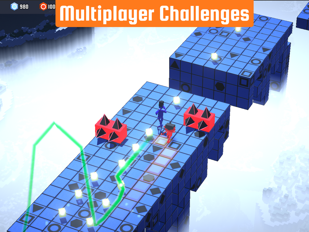 *Race each other in PvP challenges, try to beat level completion times and unlock skins, levels and NPCs with your speed racing and level building skills.