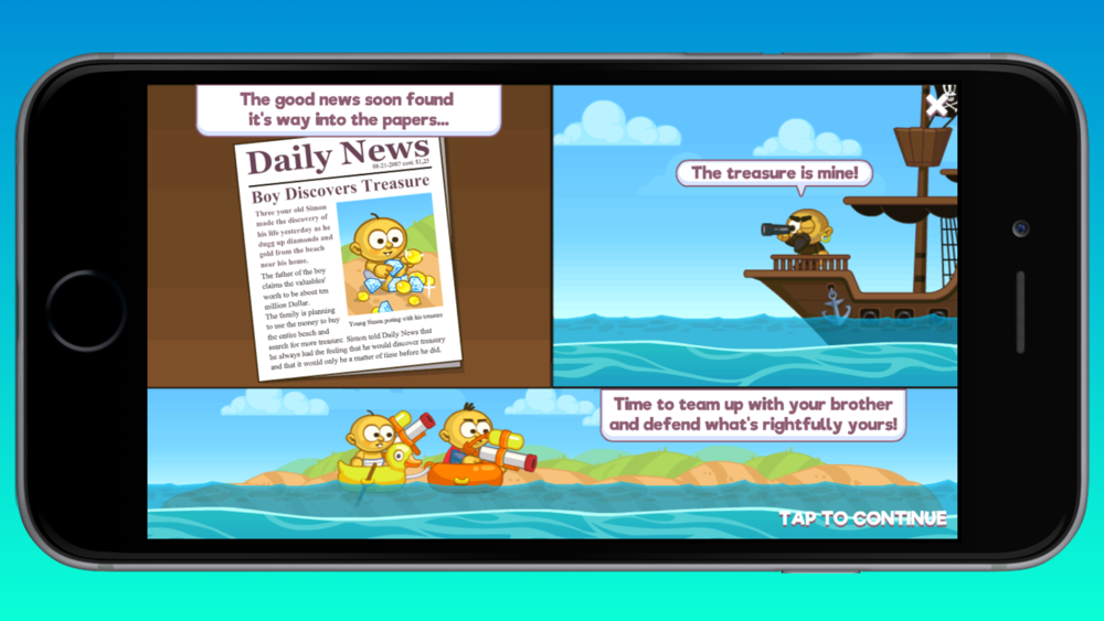 Pirate Raft Wars is a fun, level-based shooting, where you and your brother Simon will need to defend your treasure from enemies of all kinds! Initially armed with your raft and only some tennis balls, you'll need to focus on your aim and power in order to defeat vikings, pirates, gangs, and more! Hit your opponent to knock them off their raft or wear down their health until they fall in! Earn coins by making strategic shots in order to unlock grenades, rockets, and raft upgrades.
