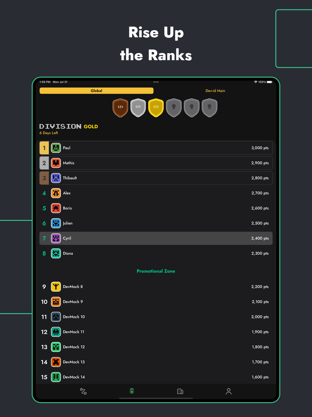 3. Gamification at its Best: Rise through the ranks in our weekly leagues, maintain daily coding streaks for rewards, and get detailed insights into your code performance.