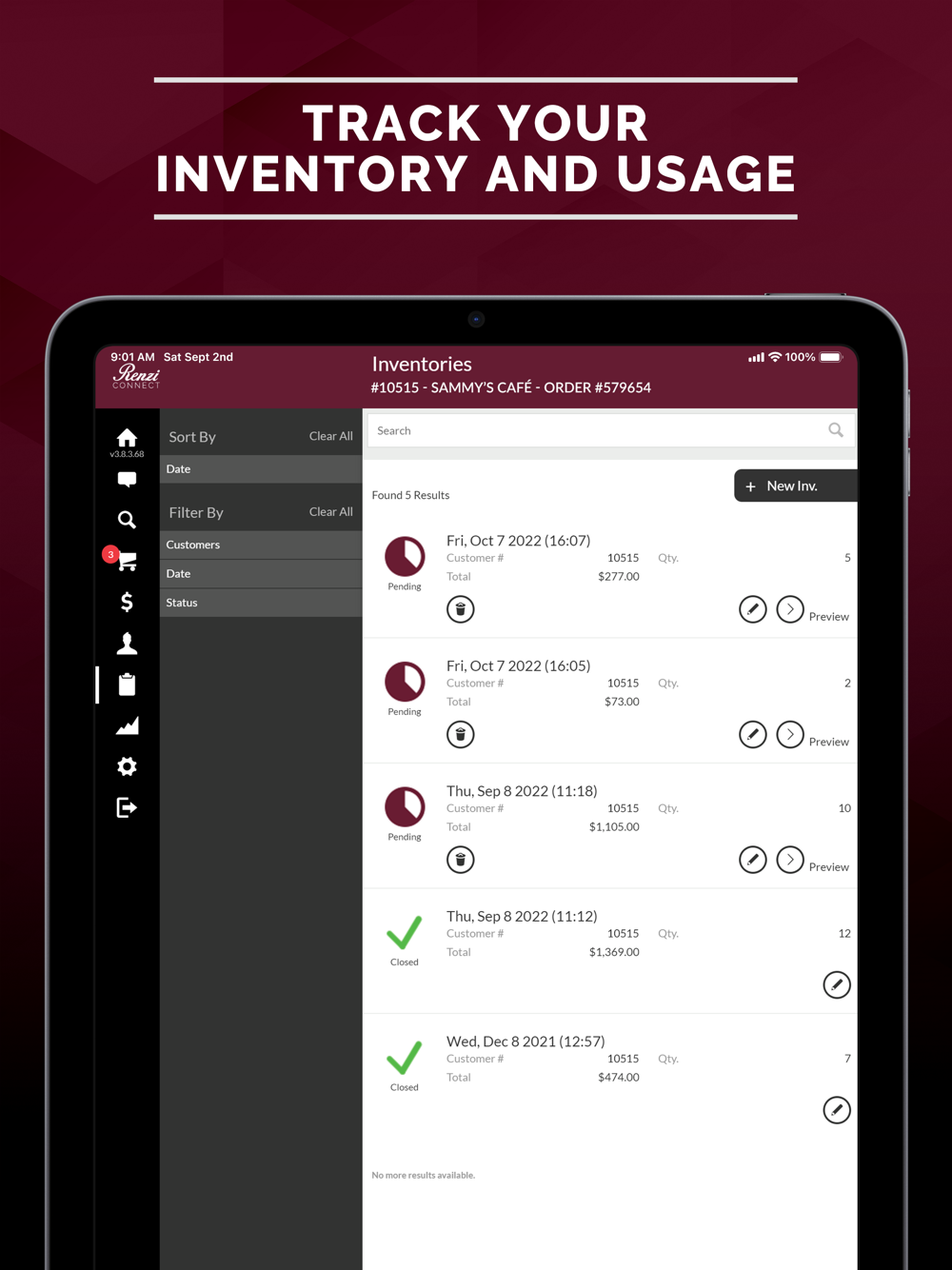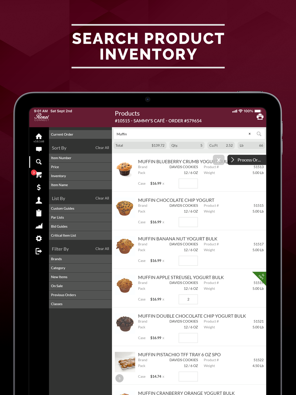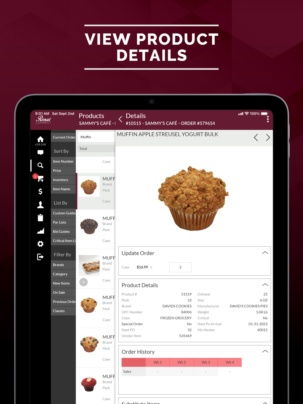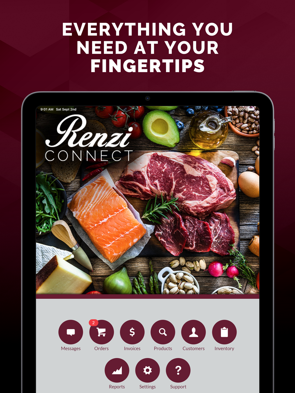 Our Renzi Connect mobile app offers a variety of features that will save you valuable time, including access to custom order guides, guided search, detailed product information, reporting, inventory worksheets, account information, and more.