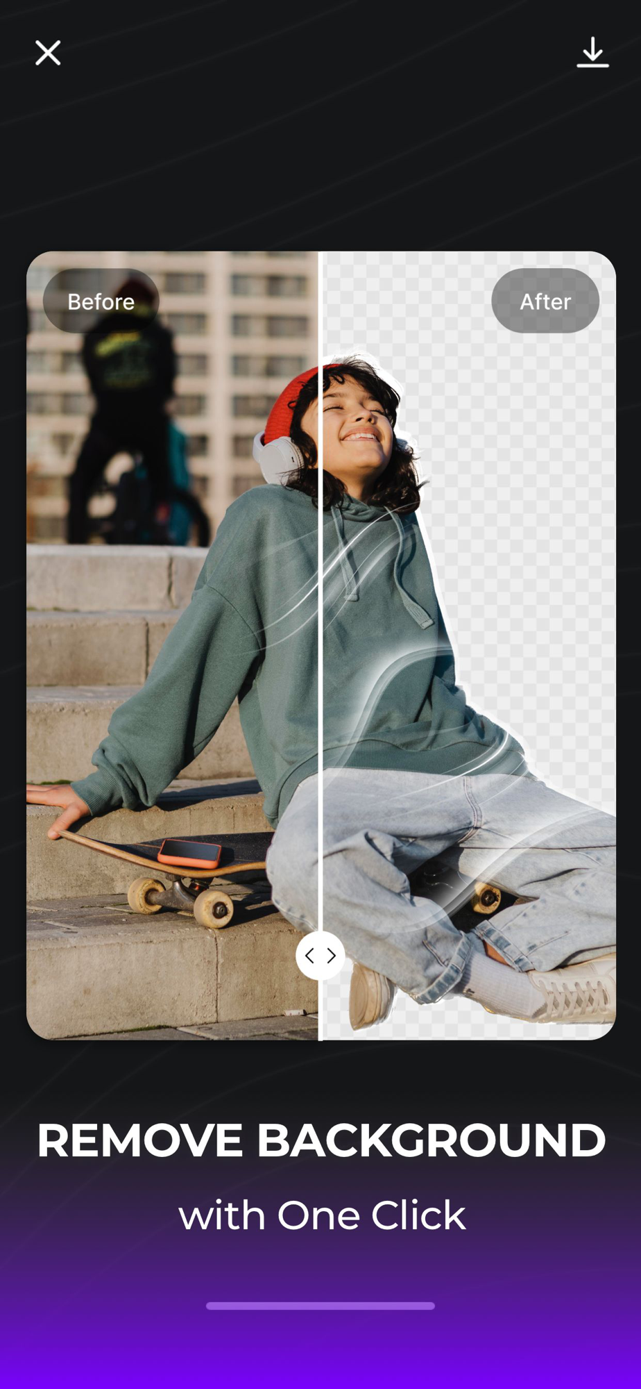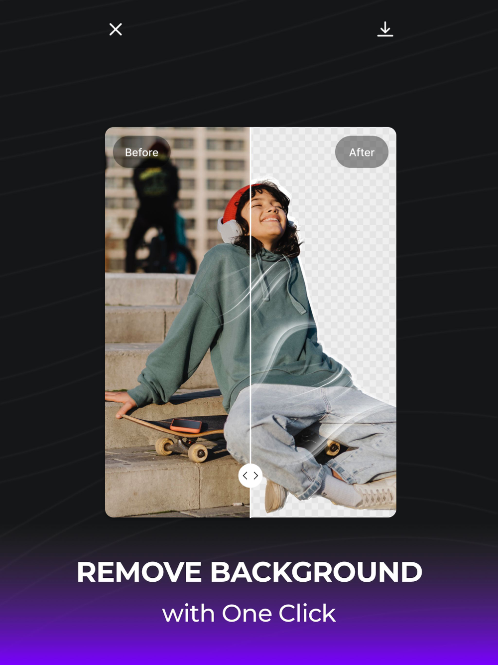 Harness the power of our Background Removal feature to take full control of your photo's composition. Using our potent background eraser, you can effortlessly remove background, letting your subject take center stage for a truly professional finish. This background remover tool ensures a seamless transition, helping your main subject stand out in every photo!