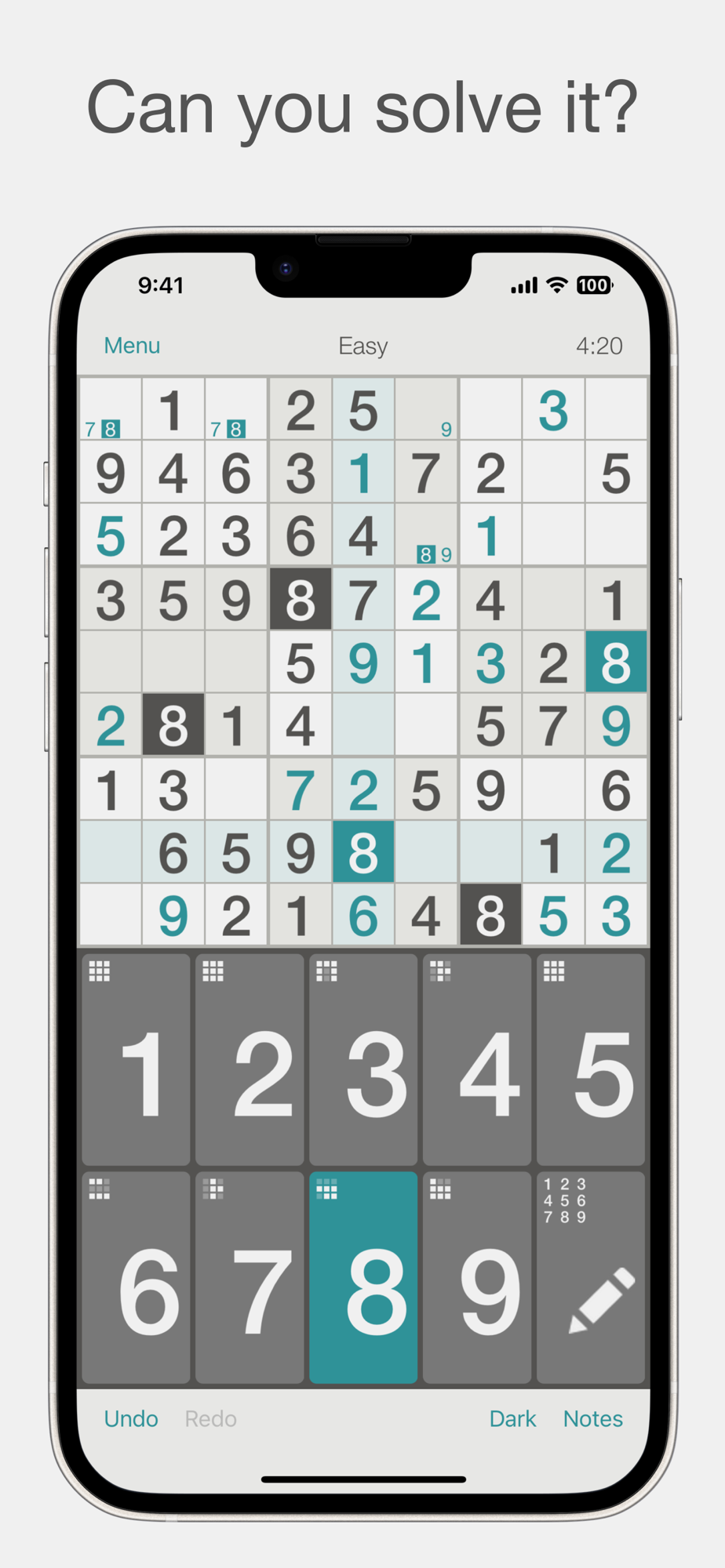 Sudoku for beginners and advanced players alike, with no ads, unlimited grids on or offline, 6 difficulty levels ranging from "easy" to "diabolical," daily challenges, and a beautiful ergonomic design.