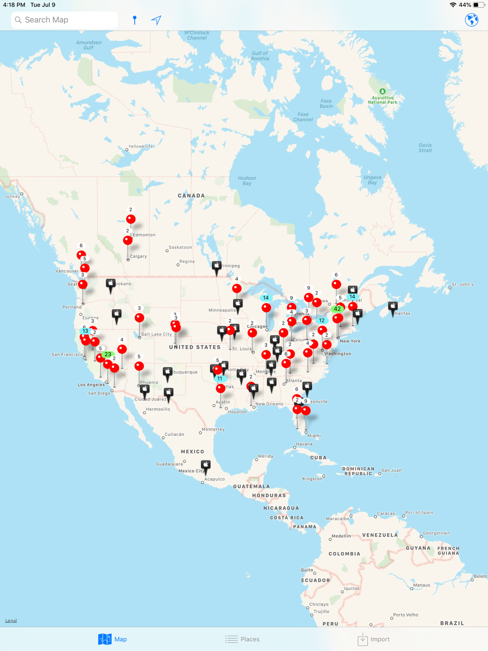 Places, waypoints, placemarks can be imported and exported, show as pin or configurable icon on maps.