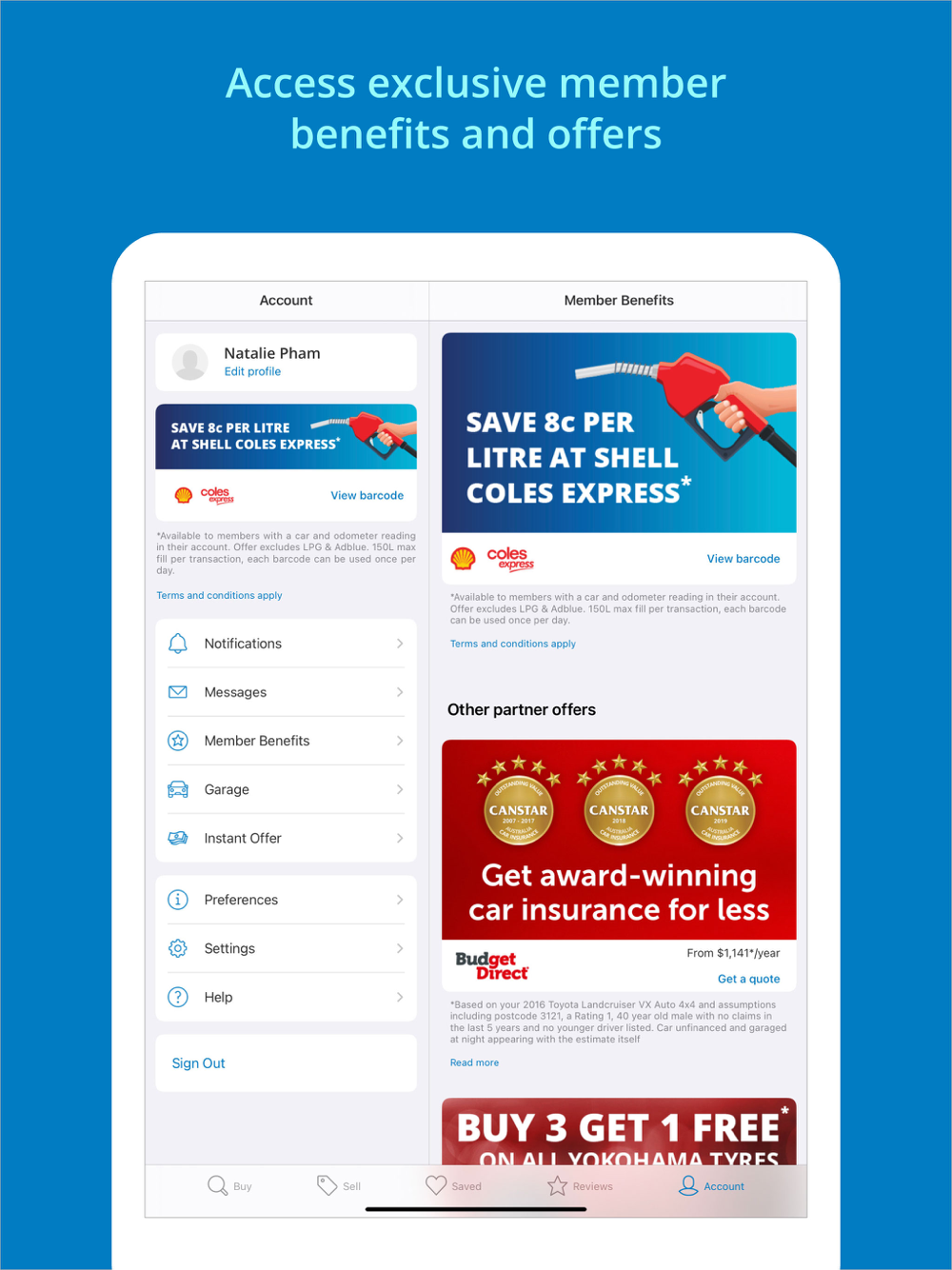• Access our Member Centre where you can sync all your saved cars, searches and email alerts